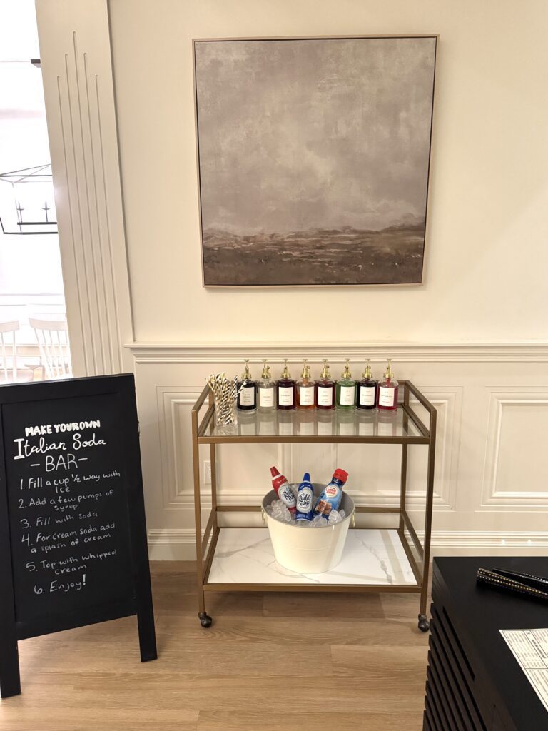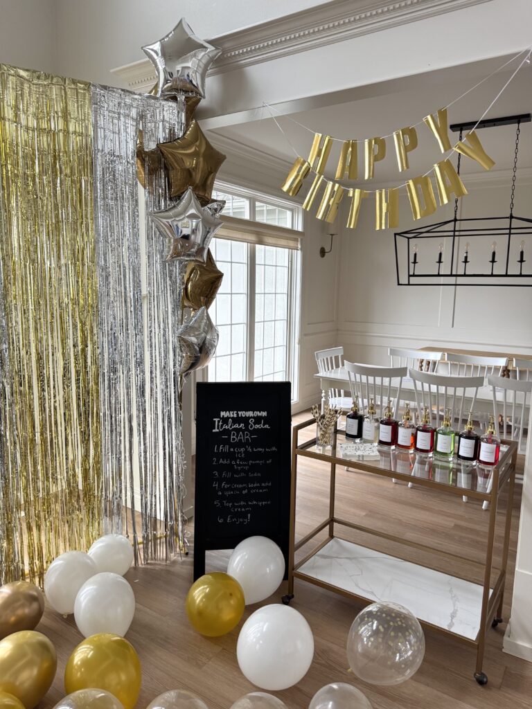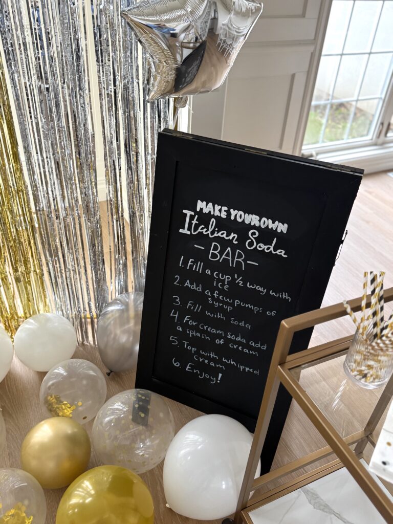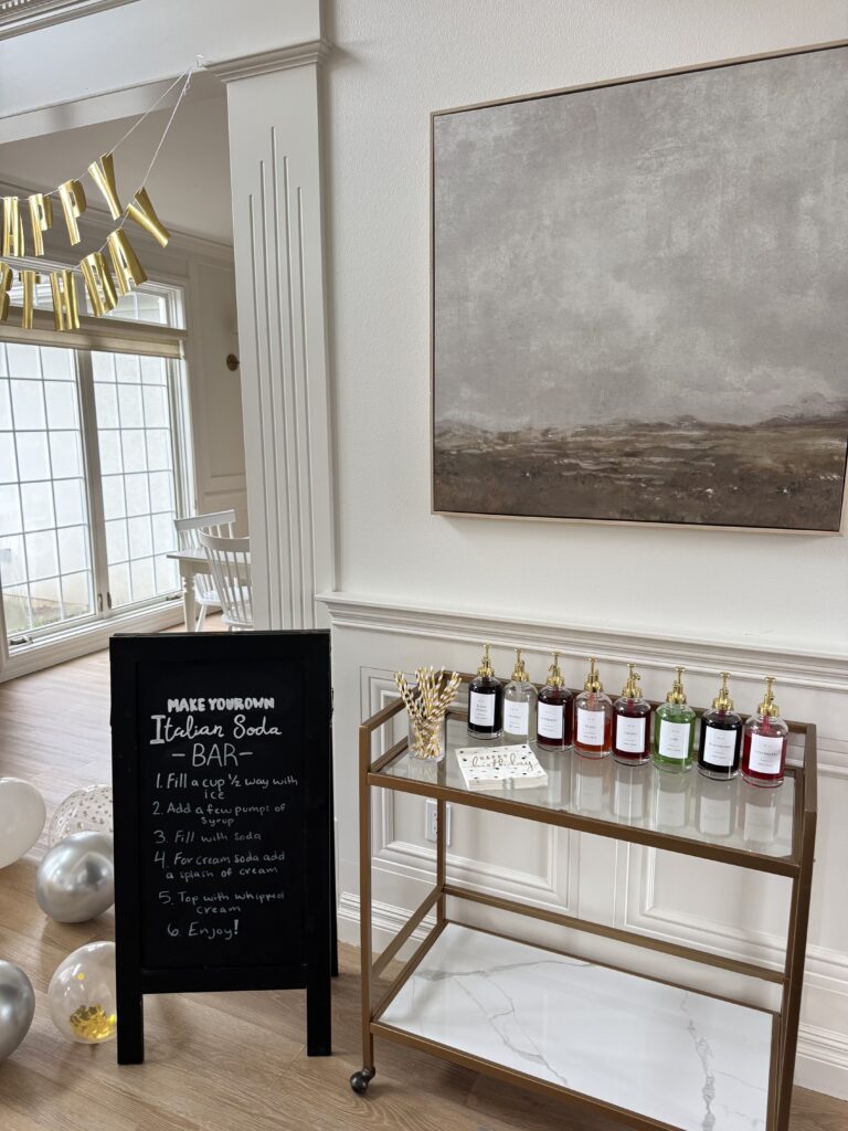We also set up an Italian soda bar / Dirty Soda bar and it ended up being one of the most fun (and popular) parts of the night. The kids loved mixing their own drinks, experimenting with different syrups, creamers, and soda combinations to create everything from classic Italian sodas to their own versions of dirty sodas. It gave them something hands-on to do and quickly became a gathering spot full of laughs, creativity, and lots of refills.