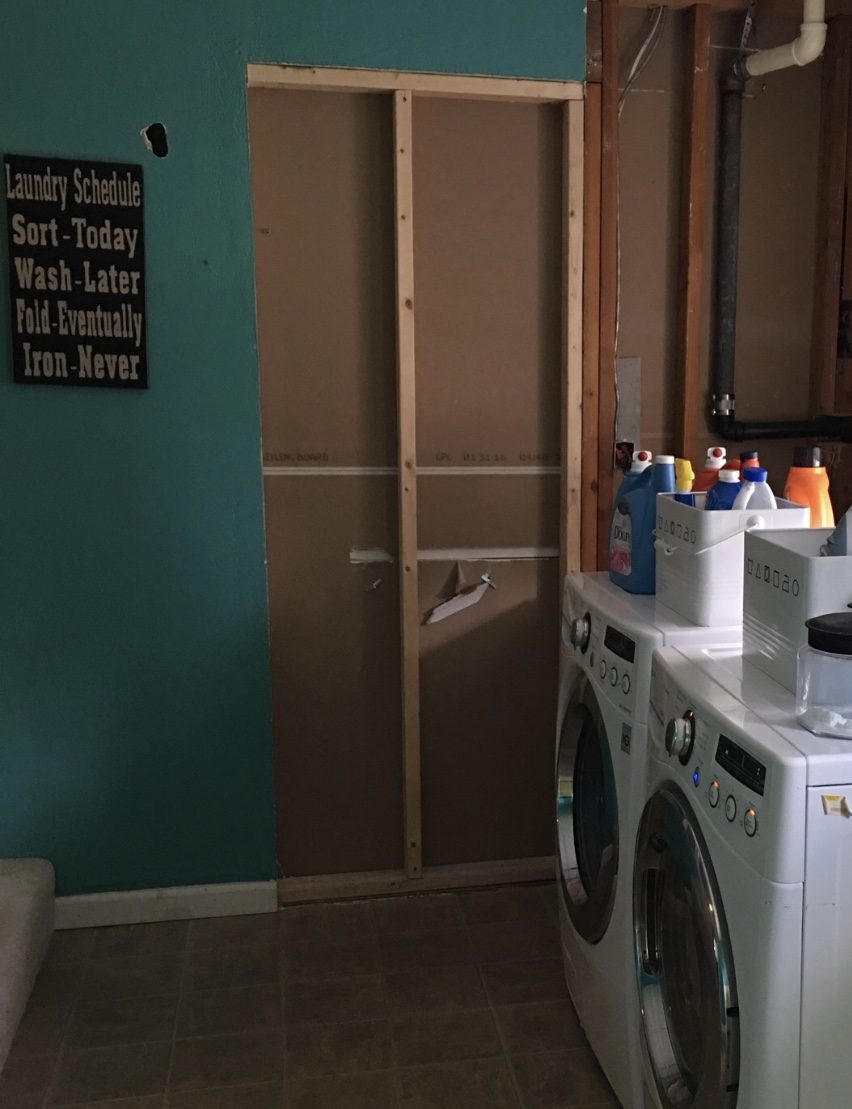 Did I mention this was a big project?? You know where my stove is in my kitchen, well before we remodeled our kitchen this was a walk through … and this washer and dryer wasn’t even here it was on another wall! Lots of labor and love went into this room… but we will get back to that later! Now lets get back to the sink, and the simple DIY we did!