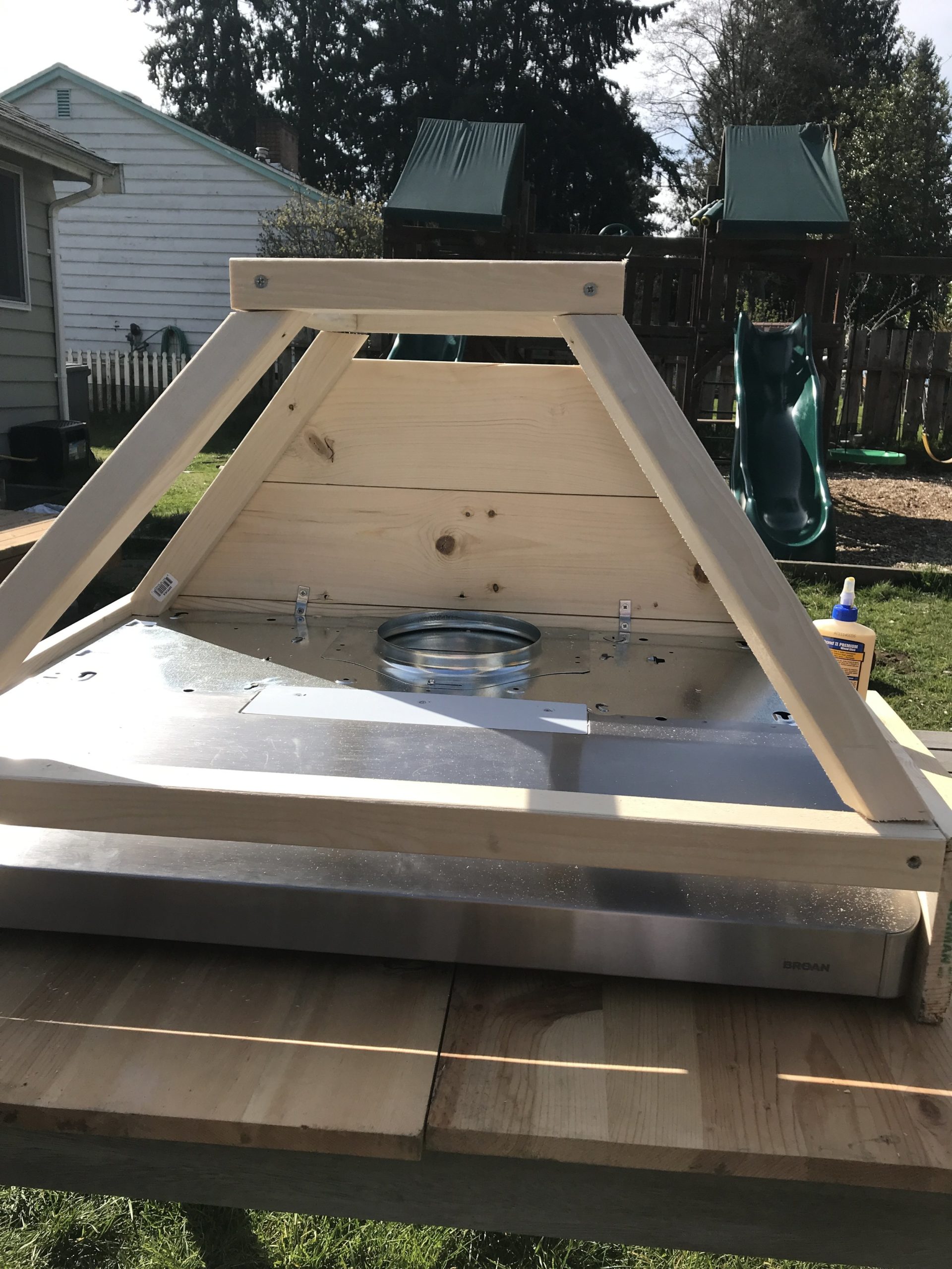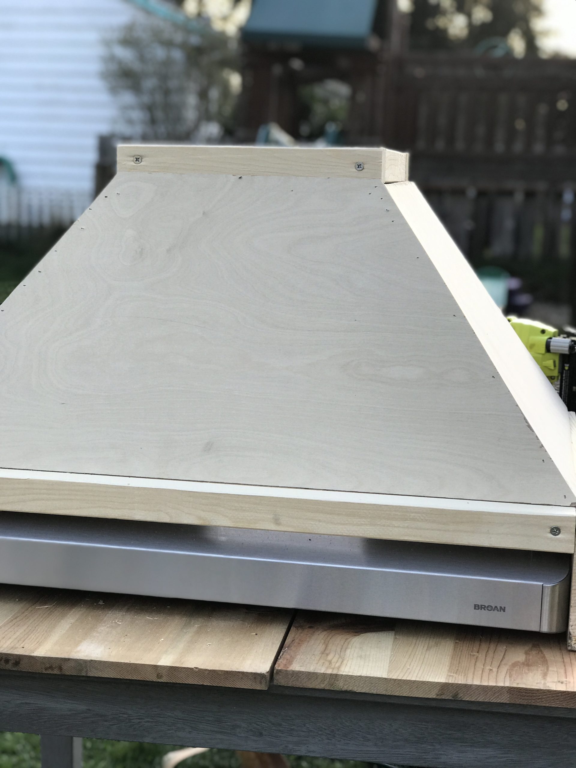 We used brad nails to attach it, and along the way we made sure the Broan Hood Range still fit perfectly and was easy to take out.