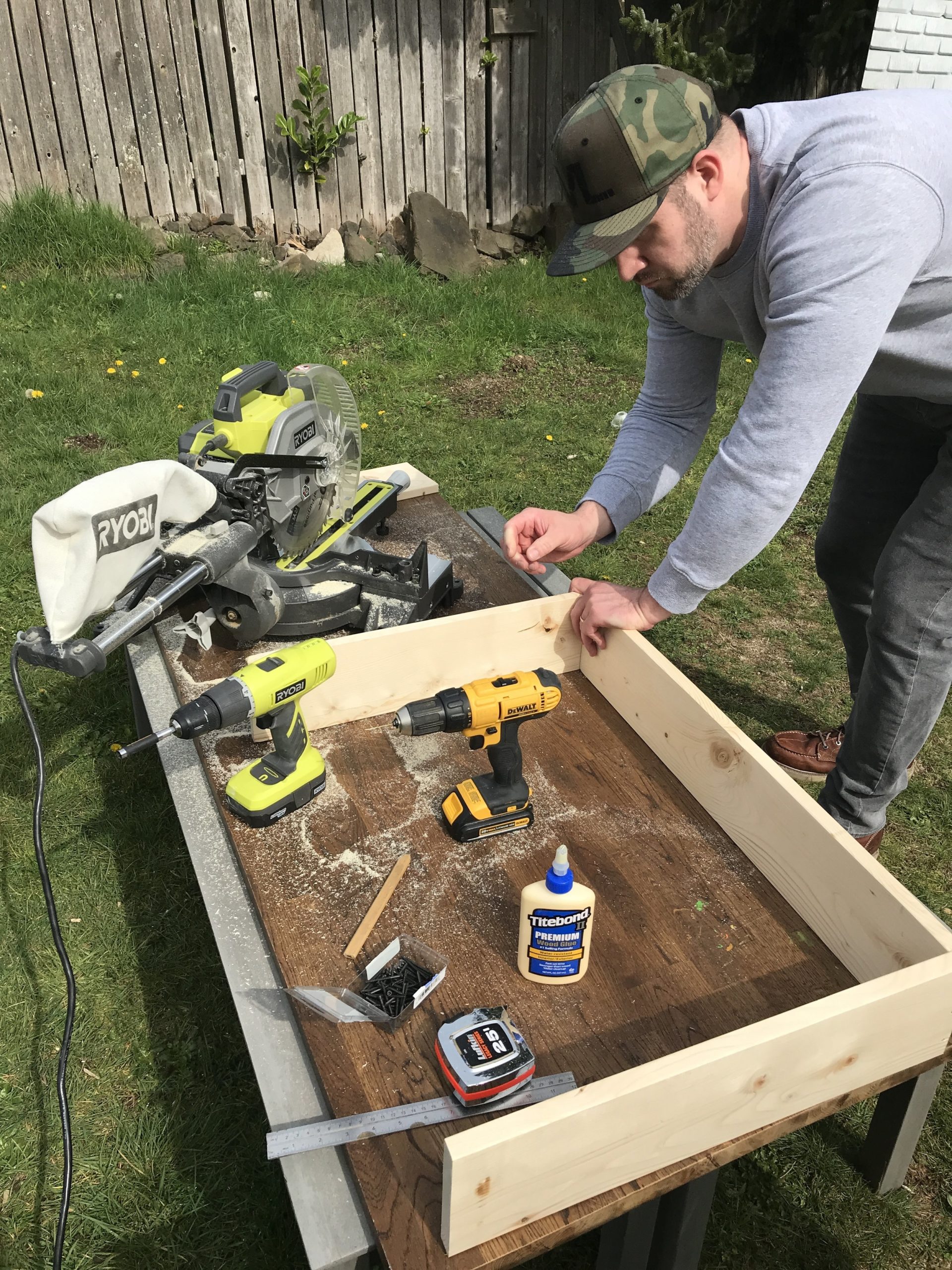 It was time to add on all the sides and the top, we added wood glue along with the screws along the way to make it stronger.