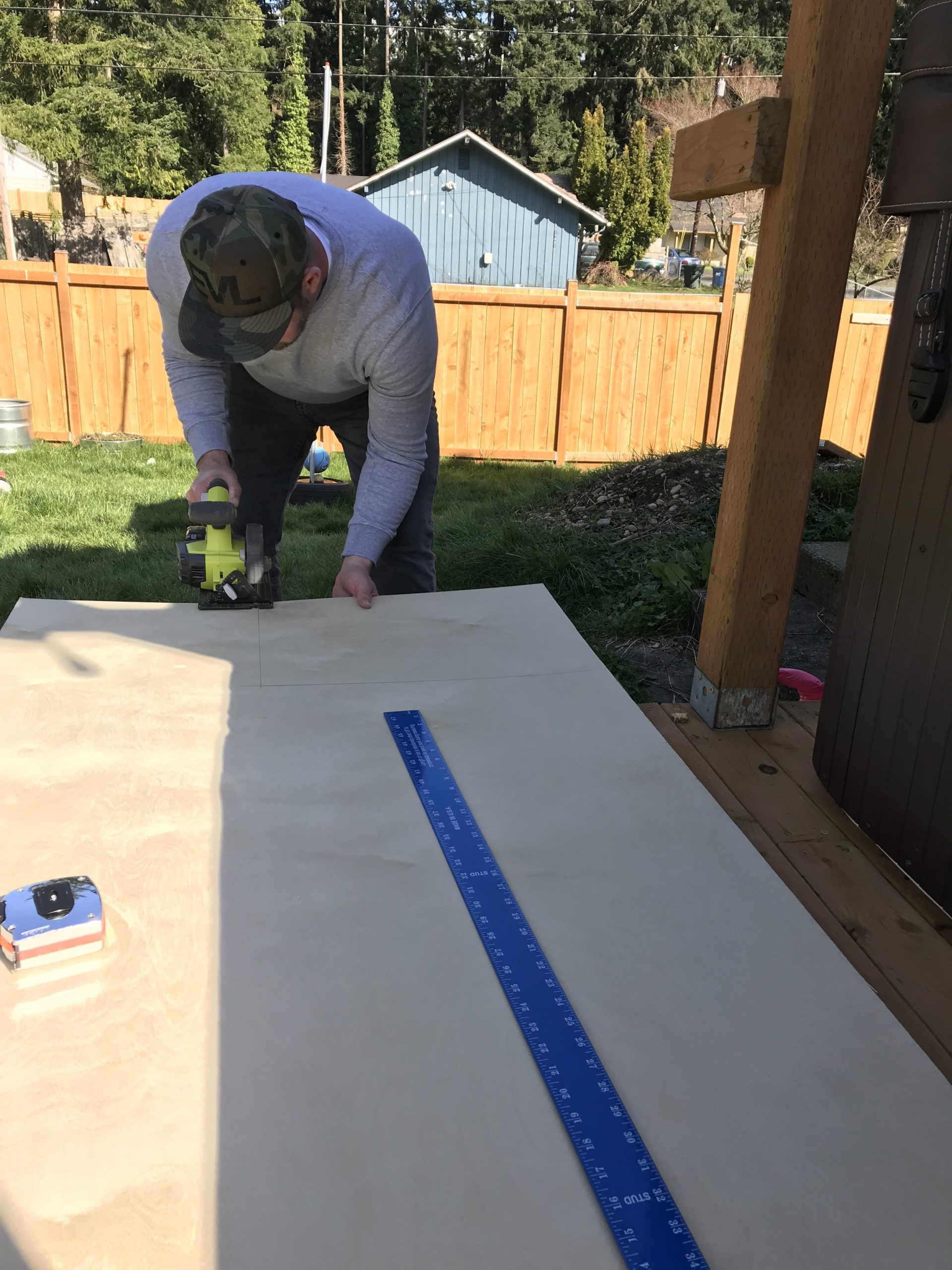 Time to cut the plywood as the exterior so we can cover it up with the shiplap.