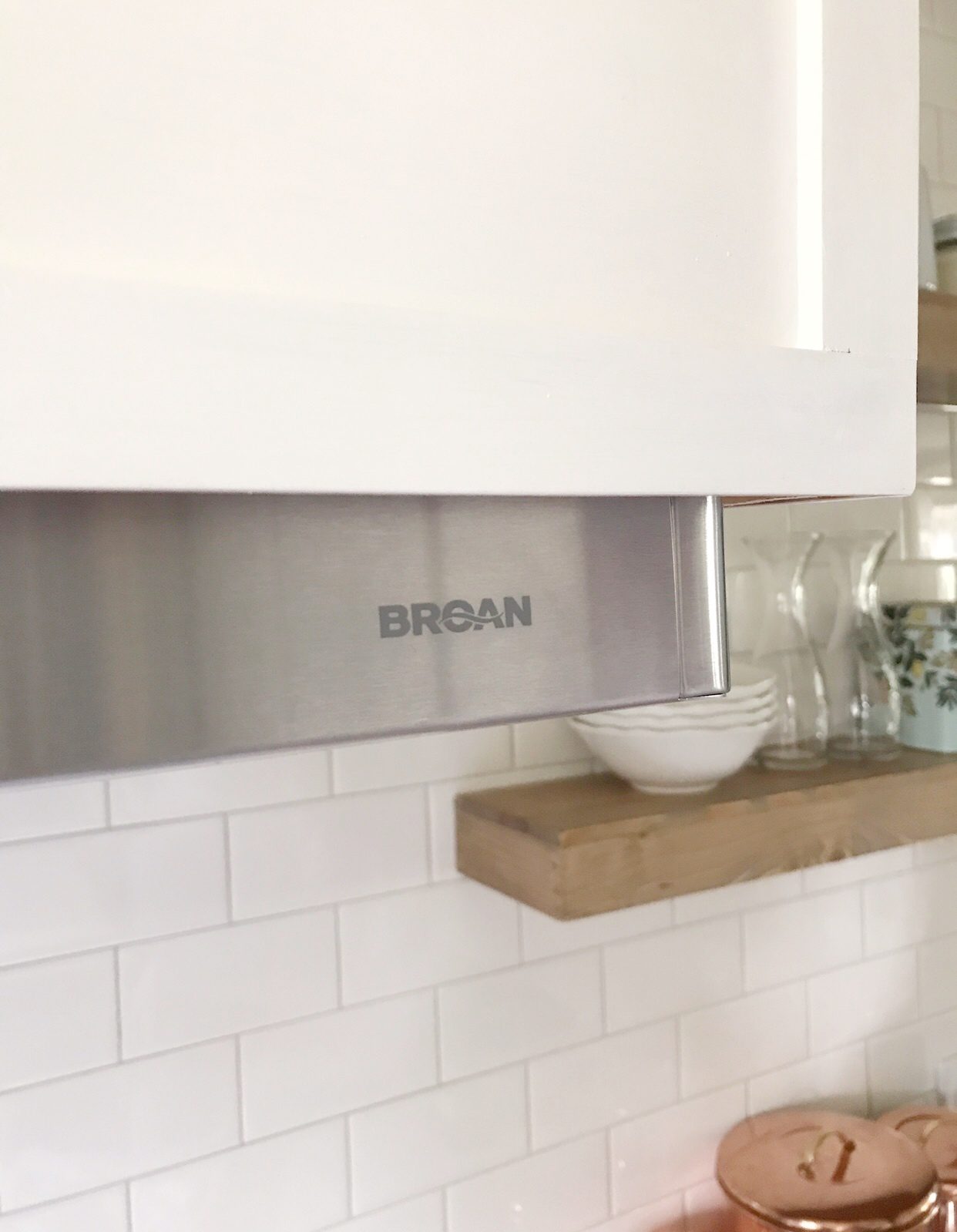 First we ordered THIS Broan range hood, and it was everything we wanted and more! I loved that it has led lights, and the buttons that are easy to use. One big thing for me was the option to be non ducted!