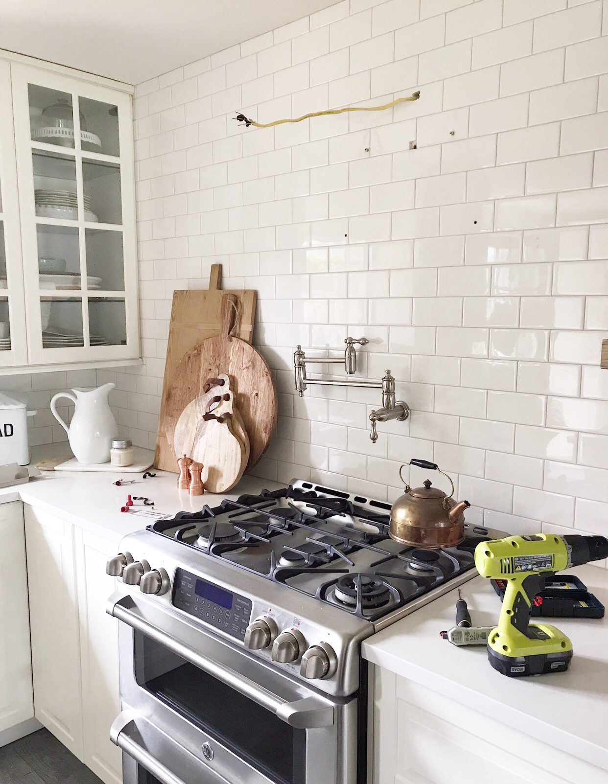 First, figure out what size you want your range hood to be. Then measure and cut accordingly. We knew what size we wanted based off the Broan Cortero Range Hood we had ordered, so it was time to get to work.