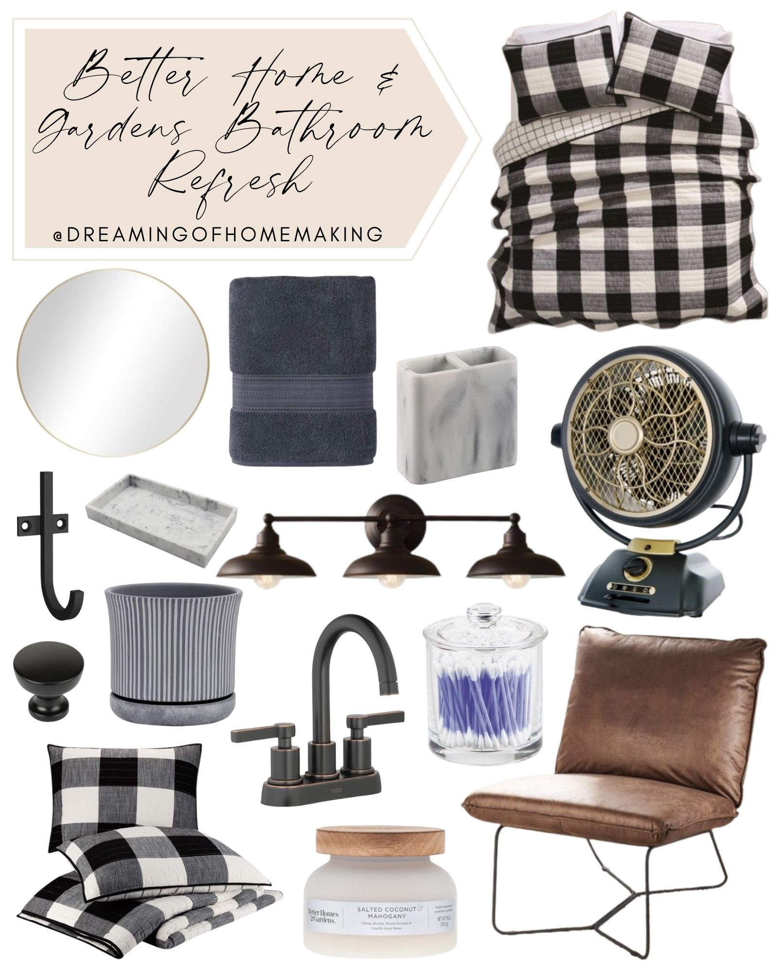 Today I am going to share with you 6 easy projects for a bathroom refresh that all take under 30 minutes each! This month my challenge with the Better Homes & Gardens line at Walmart they asked us to share a project that anyone could do and why not 6! Well really this space is 8 but I wanted to go over the quick ones, and one that wasn’t so quick!