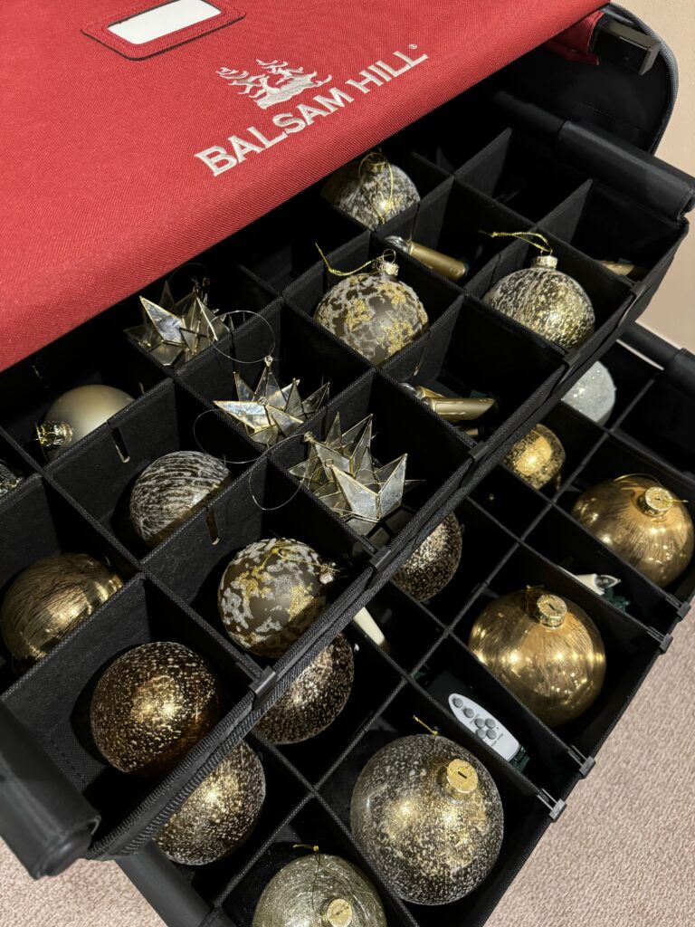 Hopefully this helps you see why I love this and think its the best ornament storage from Balsam Hill! Now we won’t have anymore broken ornaments! Yay! Come back next year to see! Also if you are looking for the most amazing trees check out Balsam Hill too!