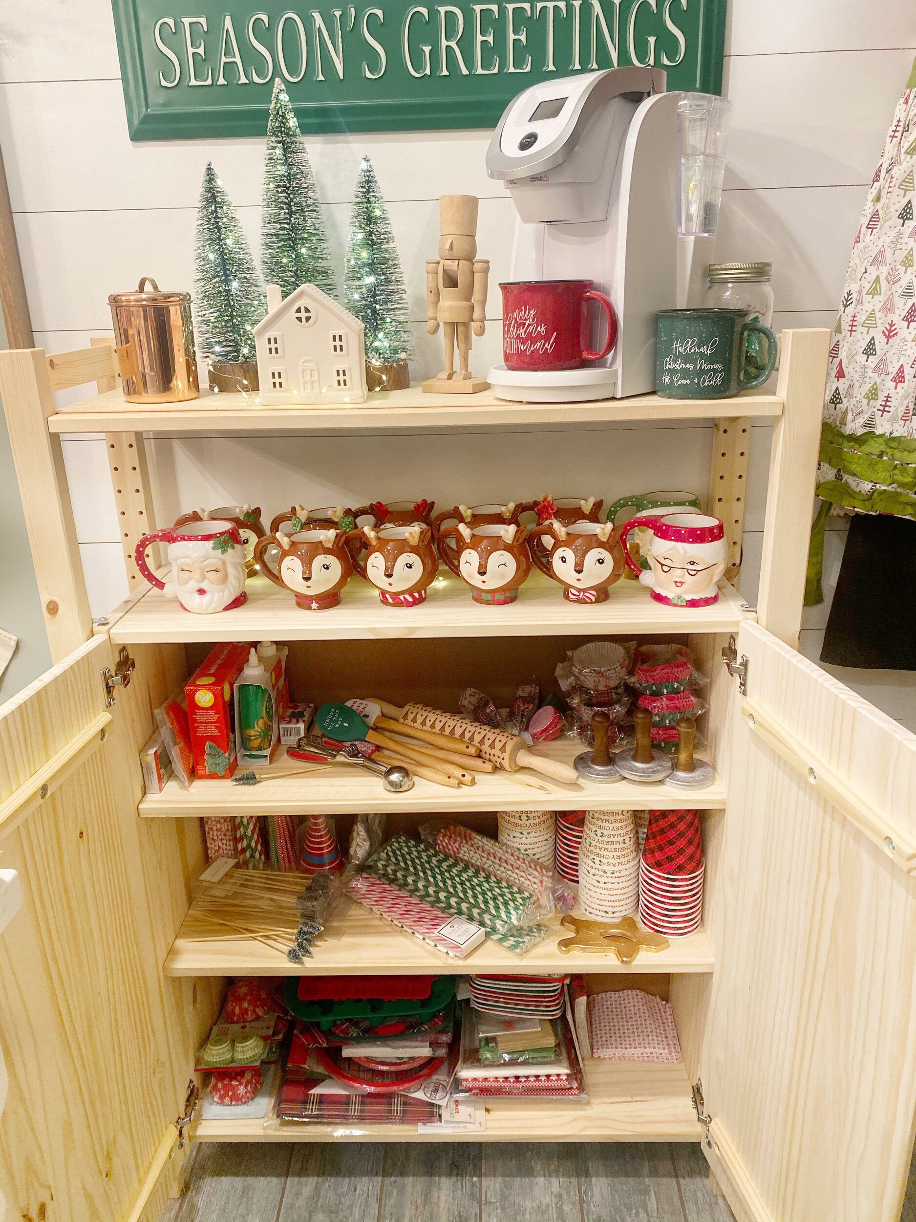 This seasons greeting sign was just what this space needed from JOANN, I went in for the hot cocoa sign but fell in love with this! Isn’t the glow of the bristle trees so lovely?