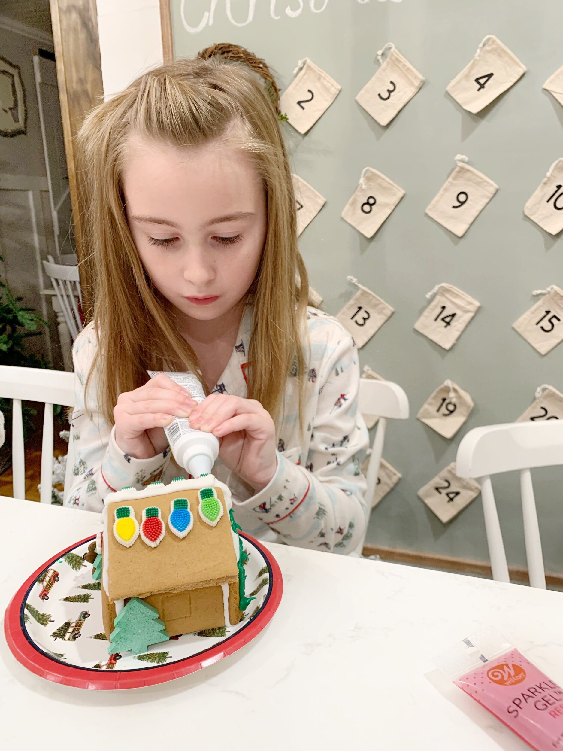 First its time to decorate the gingerbread village, the kids were so excited they even want you to vote what your favorite is at the end!