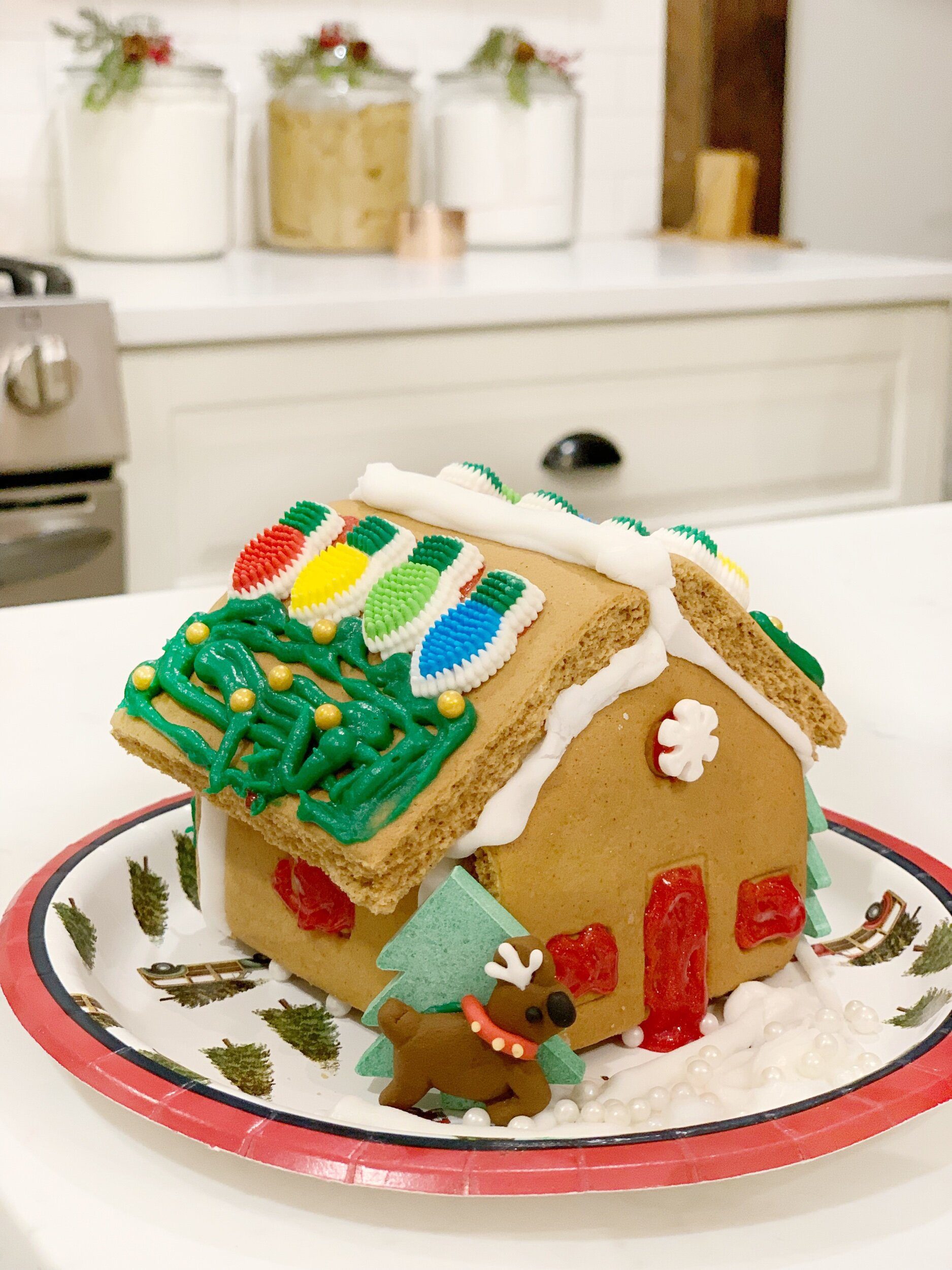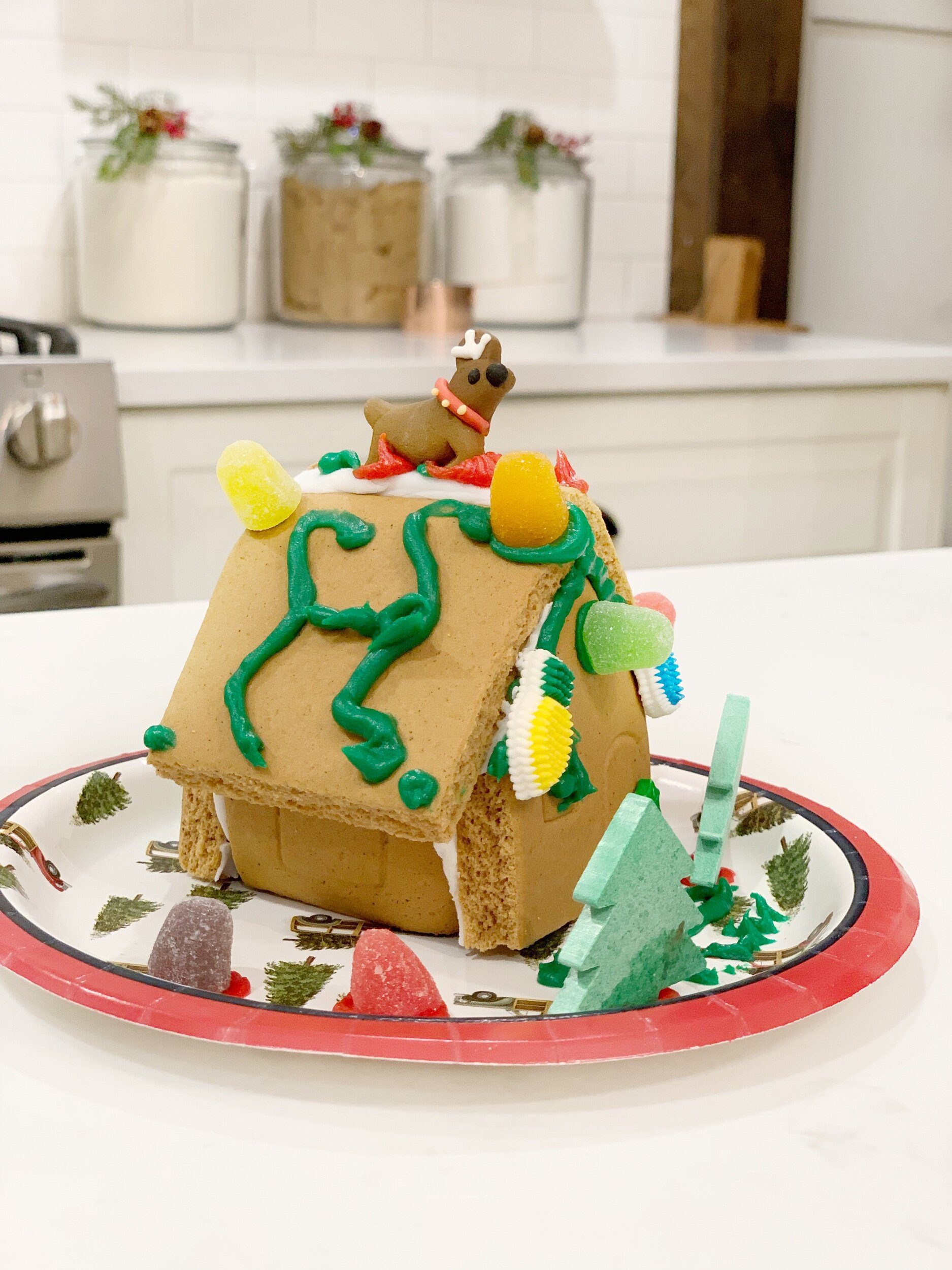 One day I need to make from scratch gingerbread houses, but for now we love the Wilton houses. They sell the full size ones, we always choose the village since their are 4 of them!