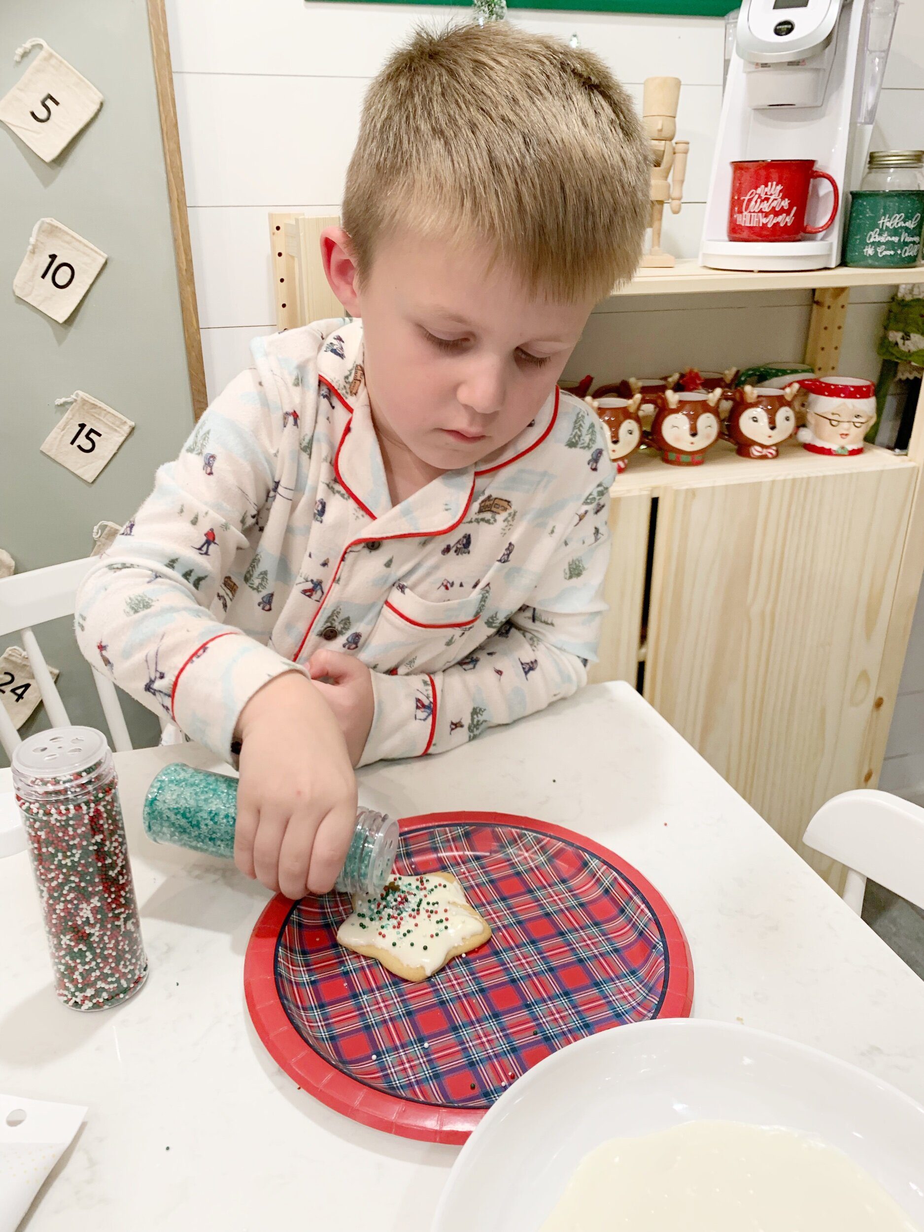 I just love the little touches of Christmas, now its time to make our cookies! We normally like to make our cookies from scratch, this time we did pre-made. If you want to know our favorite cookie recipe check out Jenny Cookies!