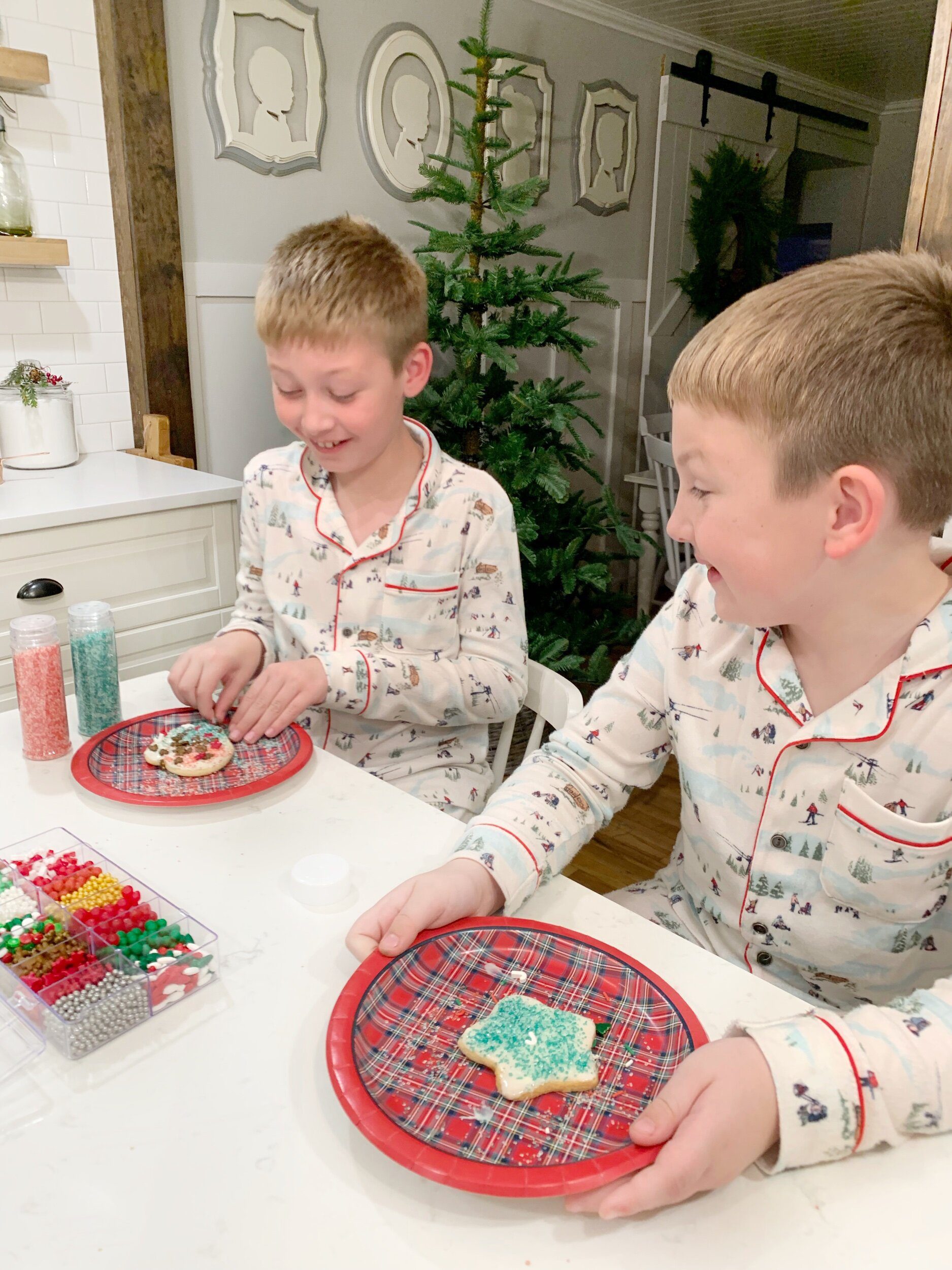 Zoe helped prep all the cookies, and the boys were so excited to decorate them!