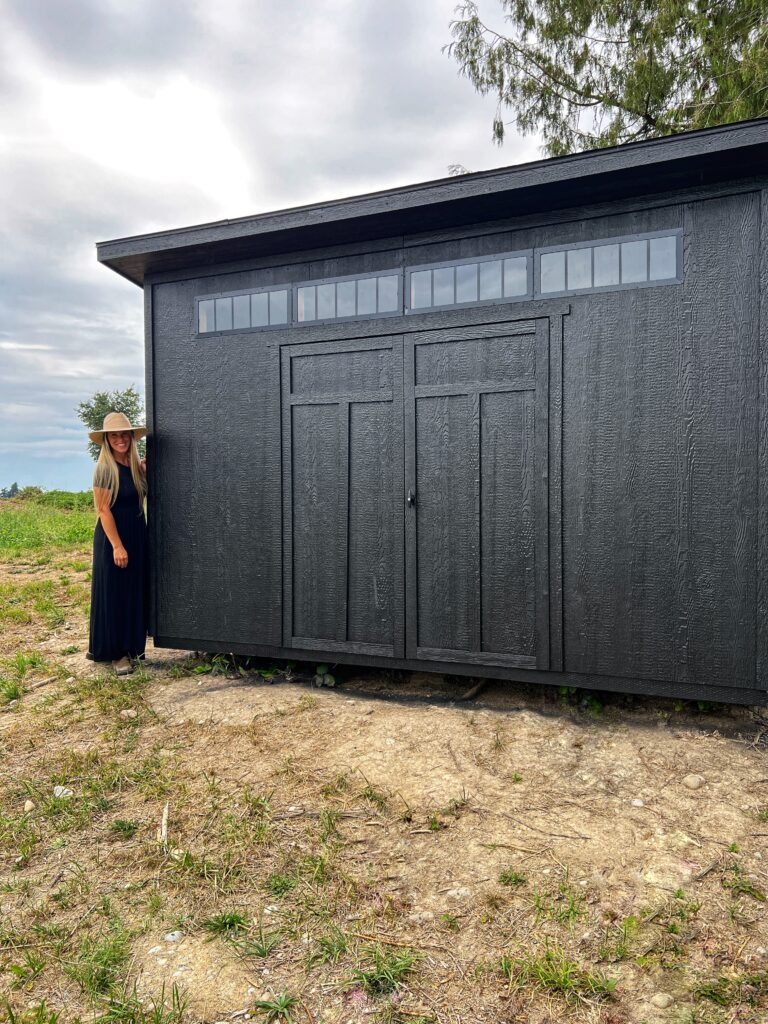 You know how much we LOVE our Heartland Sheds, welcome to our newest Modern Shed! Can I tell you a secret, something I wish I knew before? Well, when you buy a shed directly from Heartland it comes with installation! As much fun as it is to build these.. the best part is being able to just do the fun stuff – and yes that is coming for this big kid playhouse!