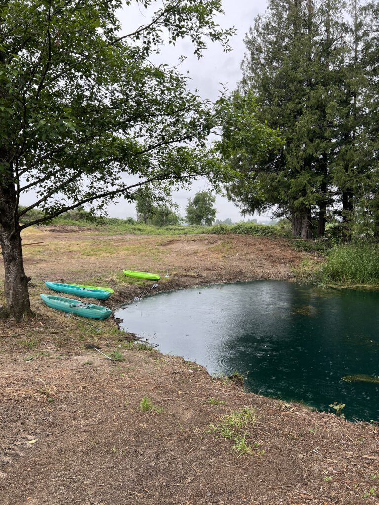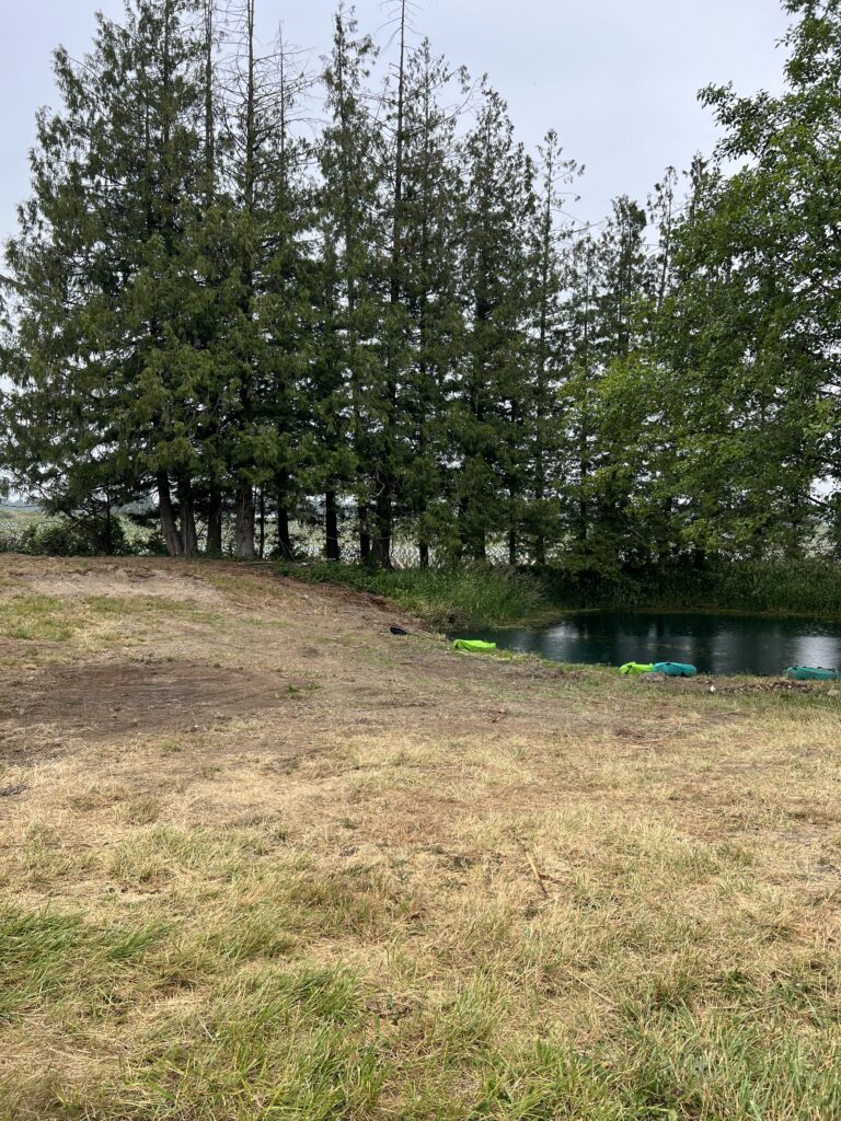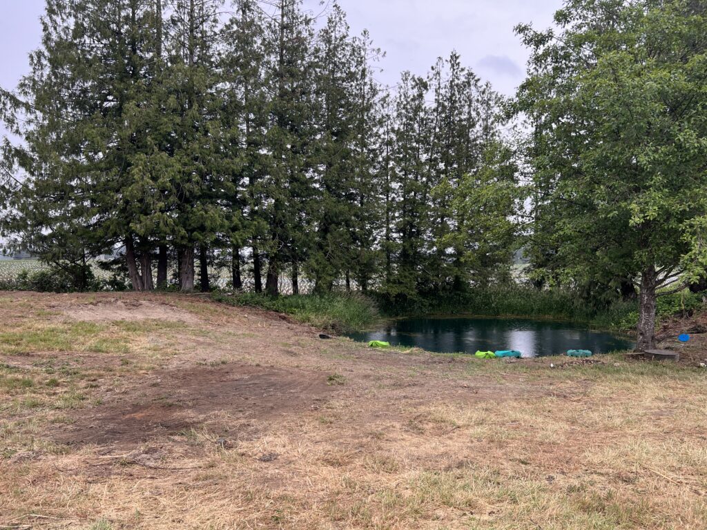 After lots of clearing of blackberries, brush, trees and so much muck.. James was able to get this pond more clear and even dig it out a bunch. We do still have endless work to do to make this big kid playhouse and pond area even better, but for now its a start!