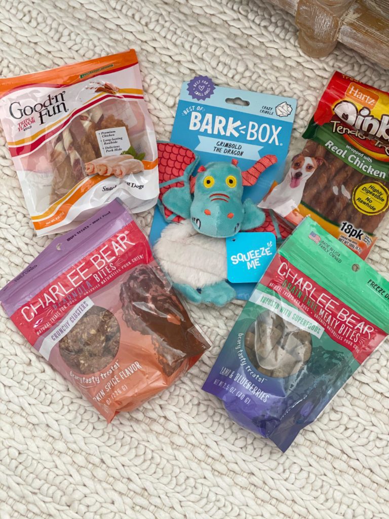 The kids would be so sad if we forgot the pups, and really getting them some new treats and a toy is needed – or they will go eat ALL the hidden eggs chocolate and ALL! We love the Bark Box toys, and the Charlee Bear snacks they just love!