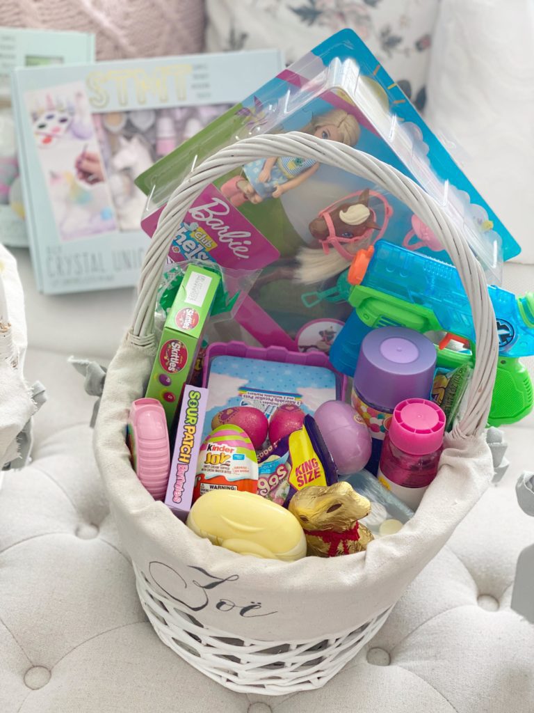 Can you guess that Zoe’s will be different than the boys, honestly its a bit easy to go overboard with her good thing her birthday is right before Easter. I found this cool unicorn crystal set for her as a craft, then of course she is obsessed with barbies so that was a must! They all love the Crayola Scribble Scrubbies so that you will see in each basket!