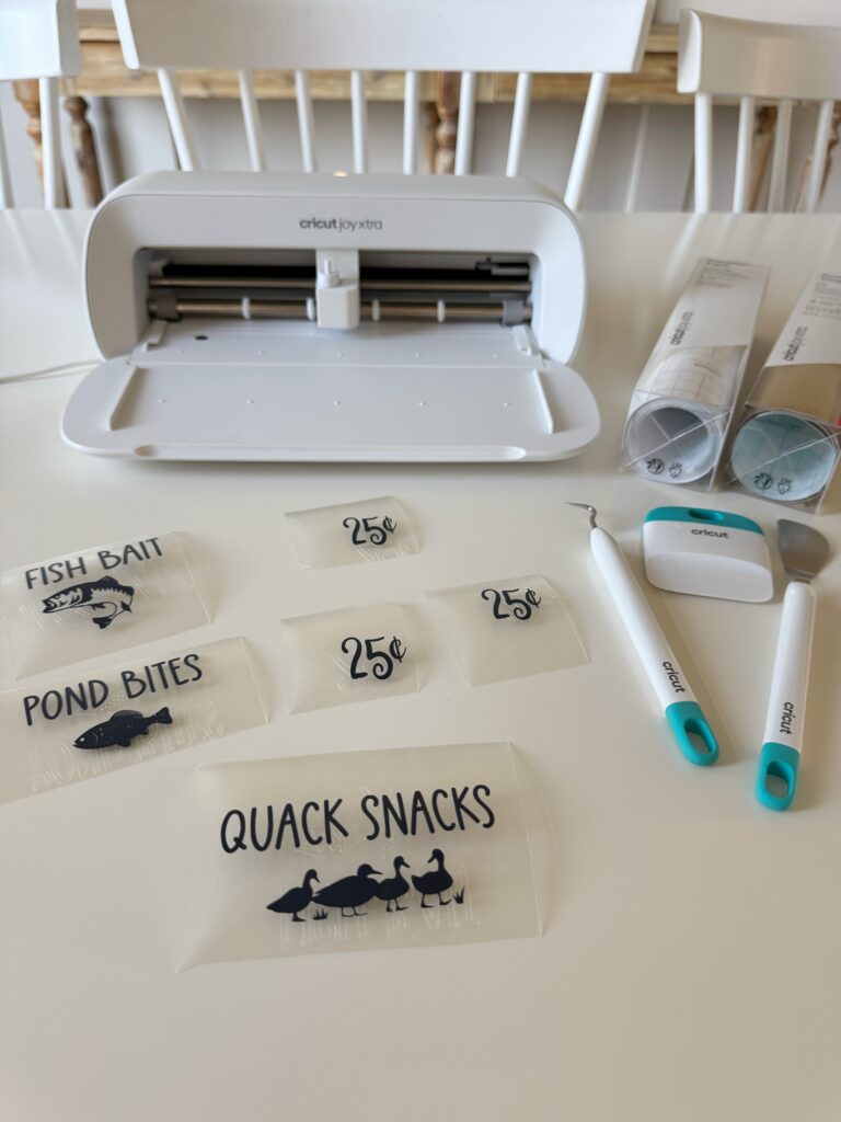 I pulled out my Cricut Joy Xtra and used The Design Space to create these custom vinyl stickers! Zoe came up with the fun names and then it was time to cut!