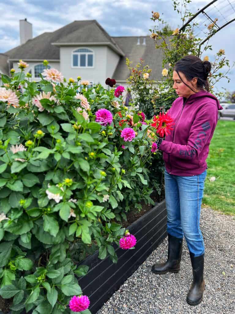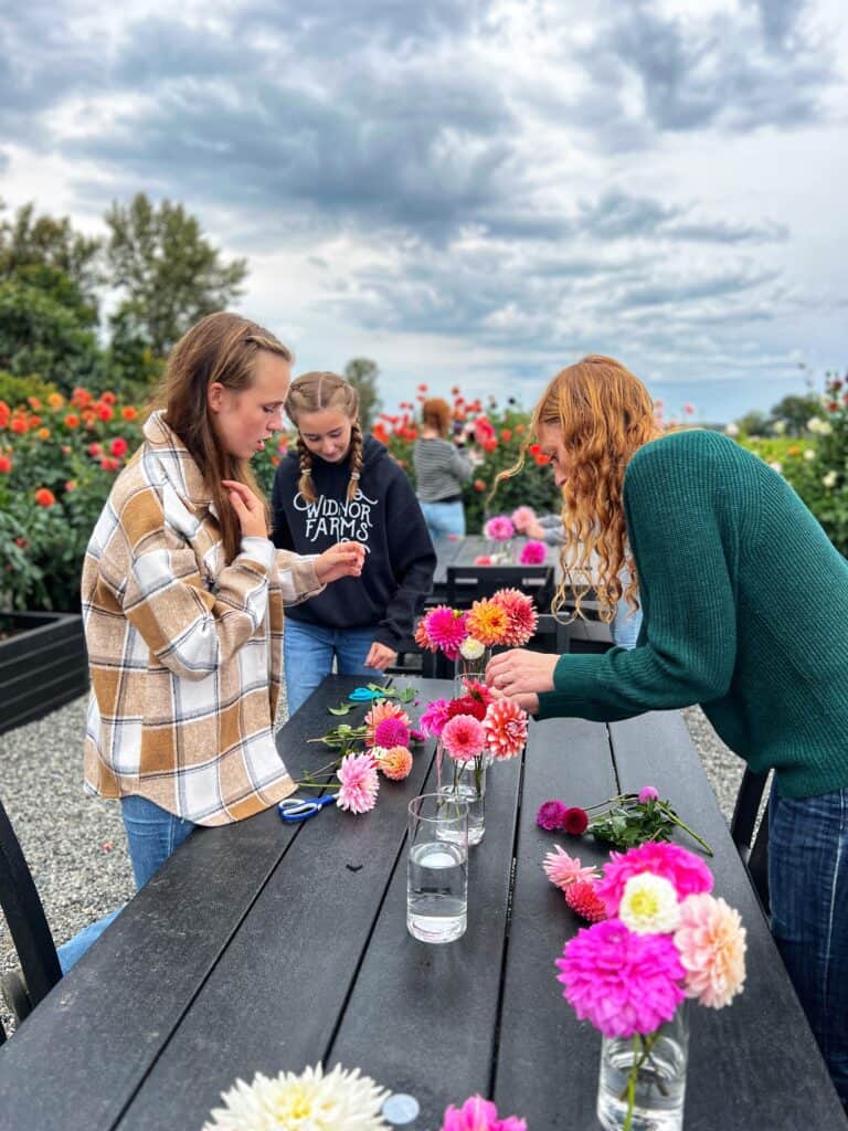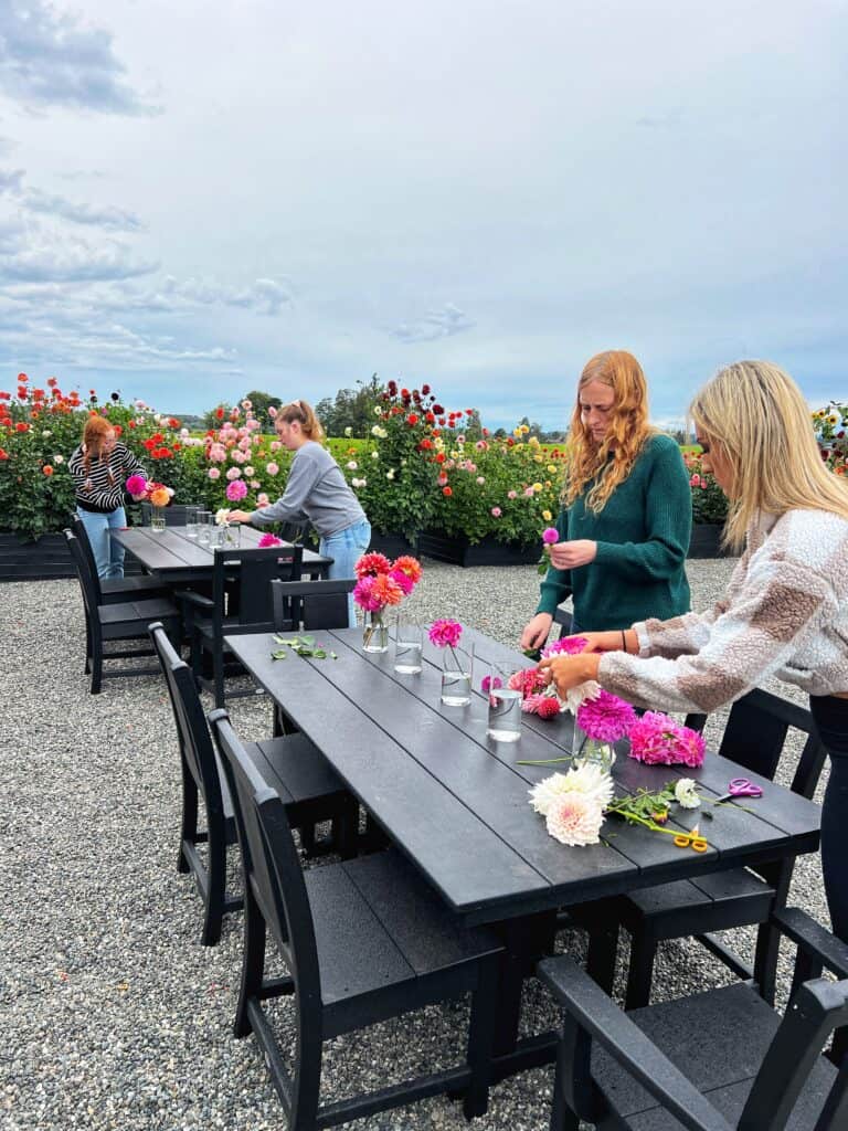 Flower Arranging Party has been one of my goals since we built our garden. We just got these amazing POLYWOOD tables and chairs and wanted to soak up the flowers while we still could! Big plans for Rosehill Cottage were supposed to happen, but sometimes great things need to wait so this was so much fun!
