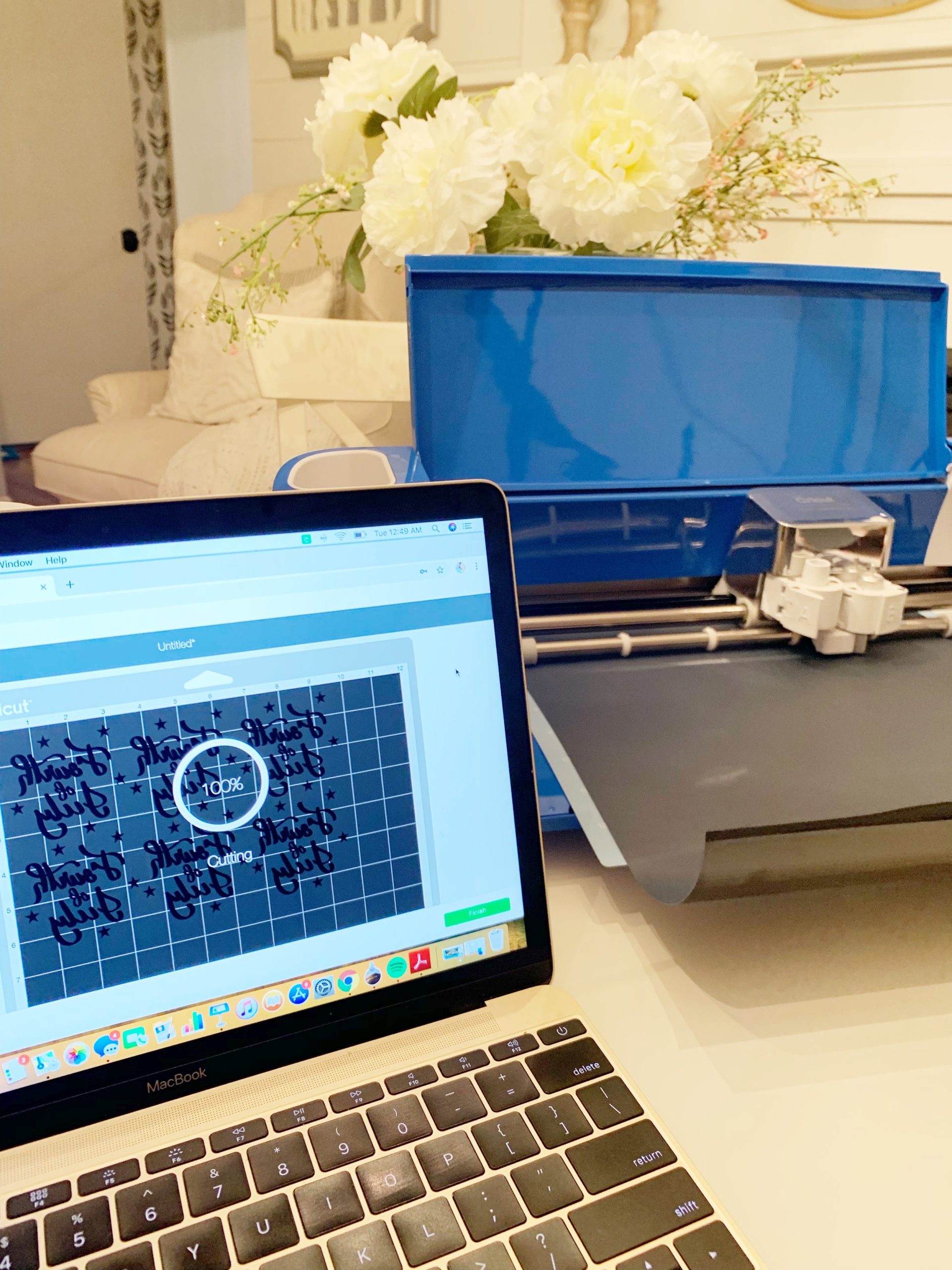 Now its time to choose your design! I found one that was already made in the Cricut shop, this made it super easy! All I had to do was pay for my design, and then duplicate it so I could fill my vinyl. Once you are done with that make sure for vinyl you press the “mirror” button and turn your dial so it comes out the right way.