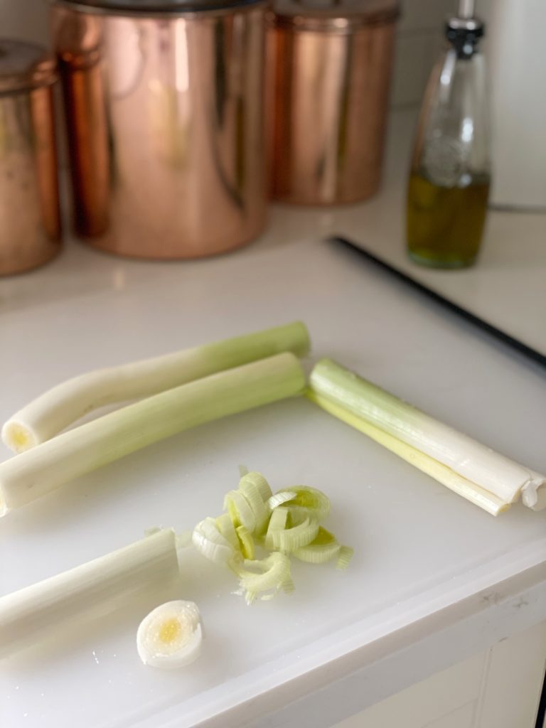 Let’s start with cutting the leeks first. Have you ever cut a leek before?