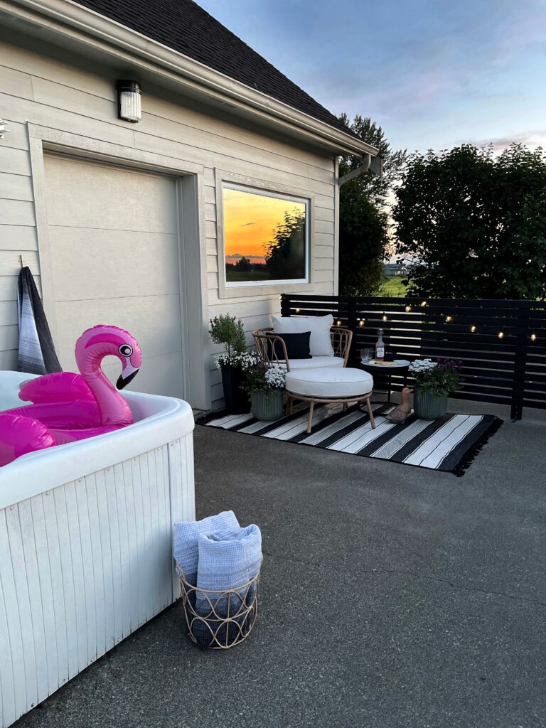 This space, I don’t think I can tell you how happy this space makes me. The kids are so excited for their first dip in the hot tub! It has seriously been the best investment, and to be able to move it here makes us so happy! I love being able to partner with the Better Home and Garden line at Walmart because I get to do fun projects like this!
