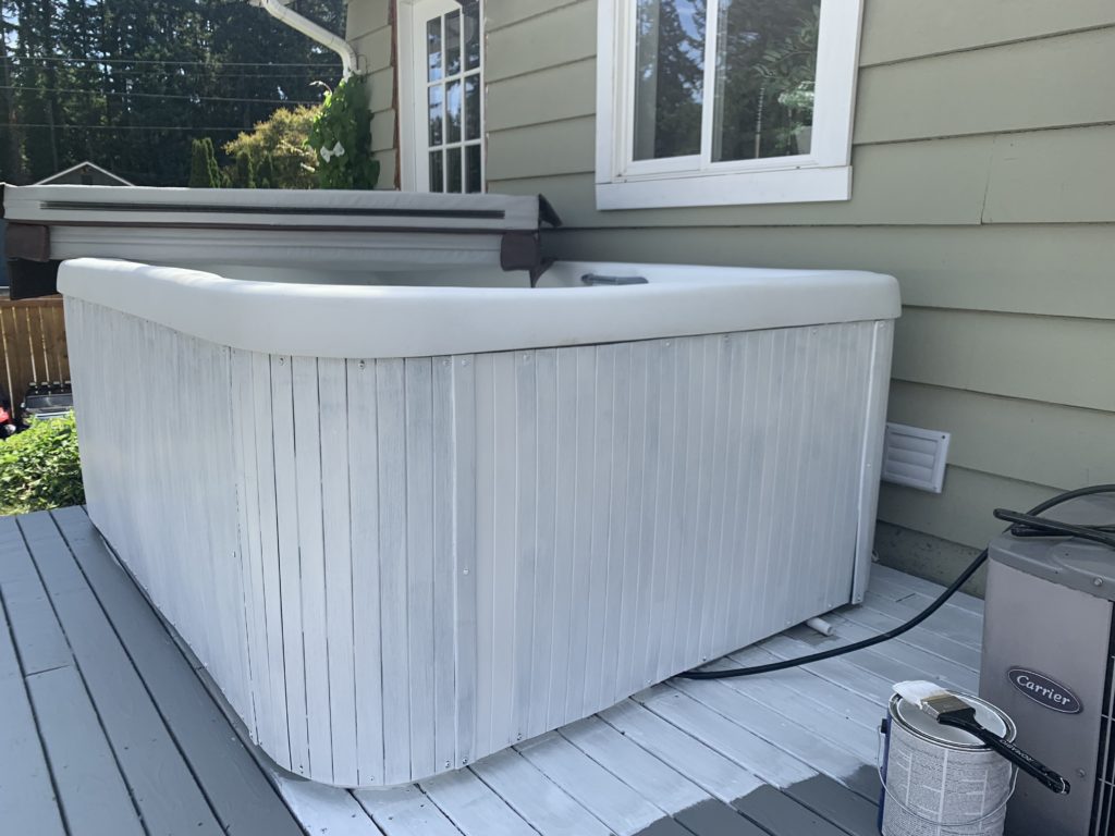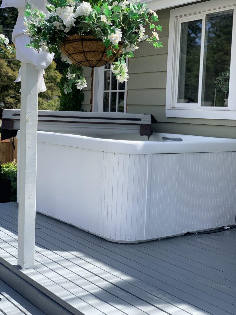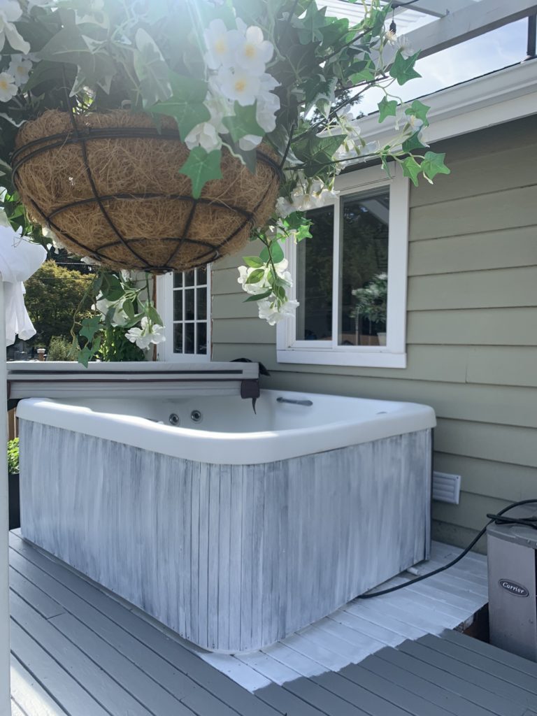 Painting a hot tub, is that a thing? I did it and I love it! Let me show you how I did and what it’s like a year later! Yes, it’s really easy!