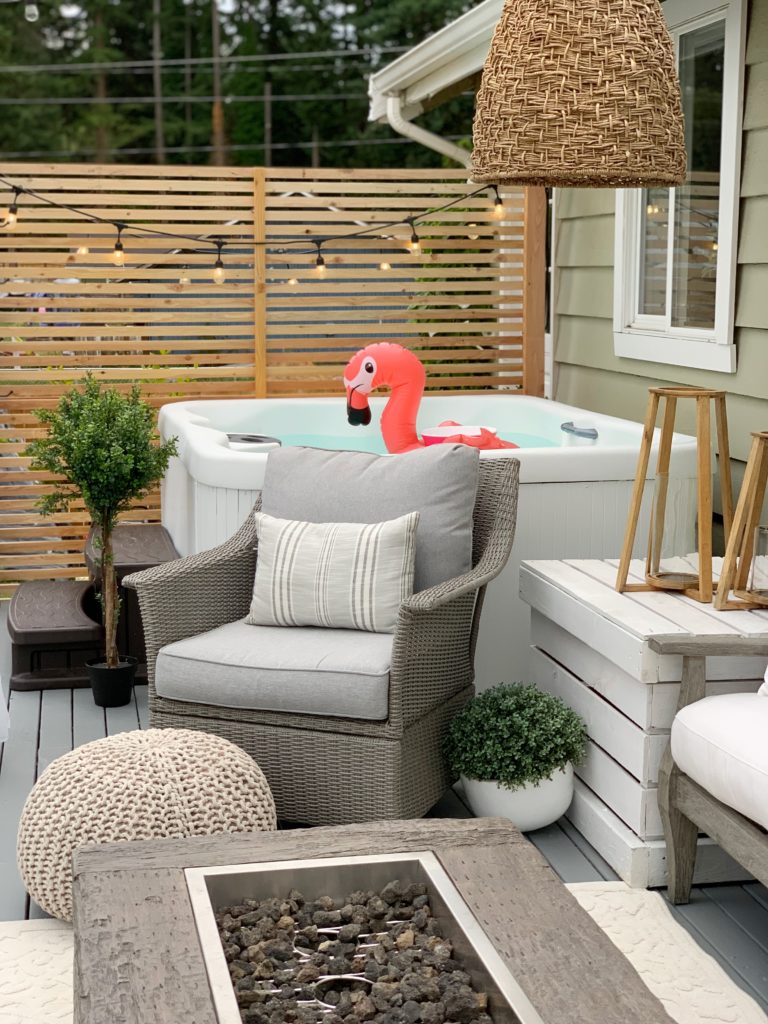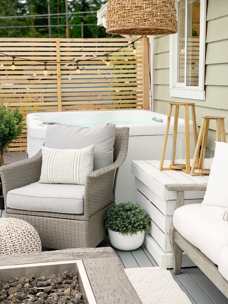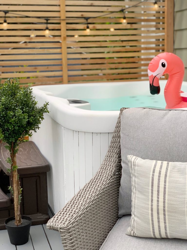 I hope you loved seeing how I painted our hot tub and are inspired to do yours! We have had it for a year and not one CHIP! It looks brand new and we get A LOT of use out of it!