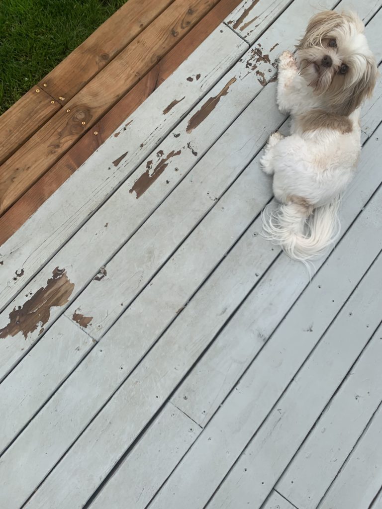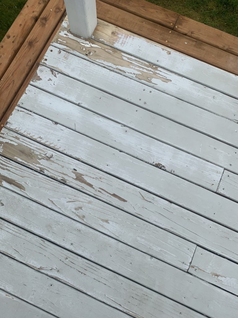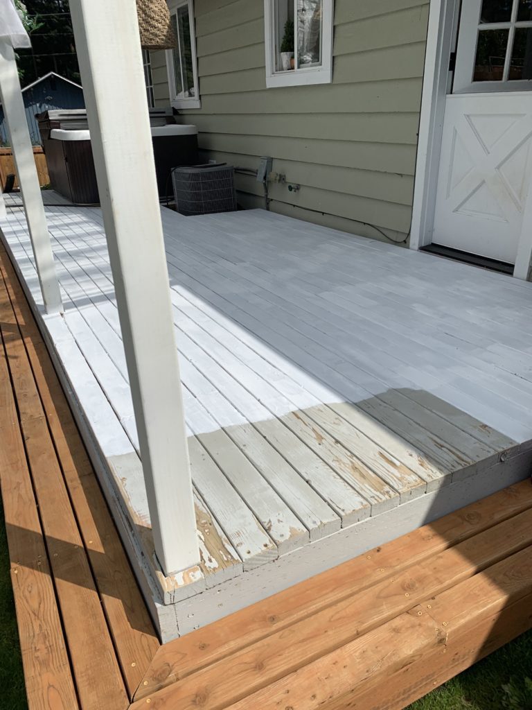 *Re-painting a deck, make sure to sand away any chipping or bubbling spots. You will want a smooth surface and its better to get it right the first time.
