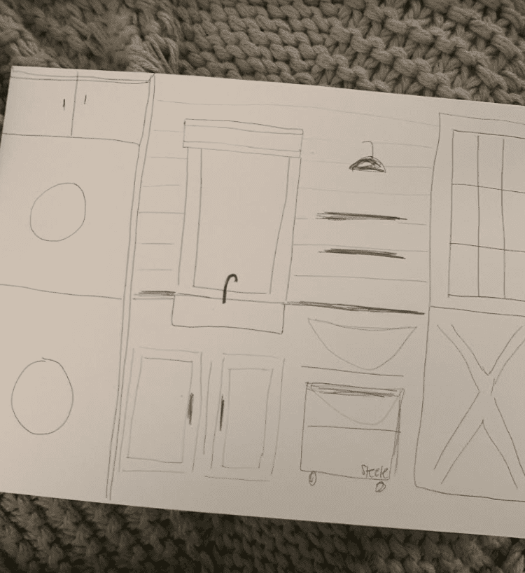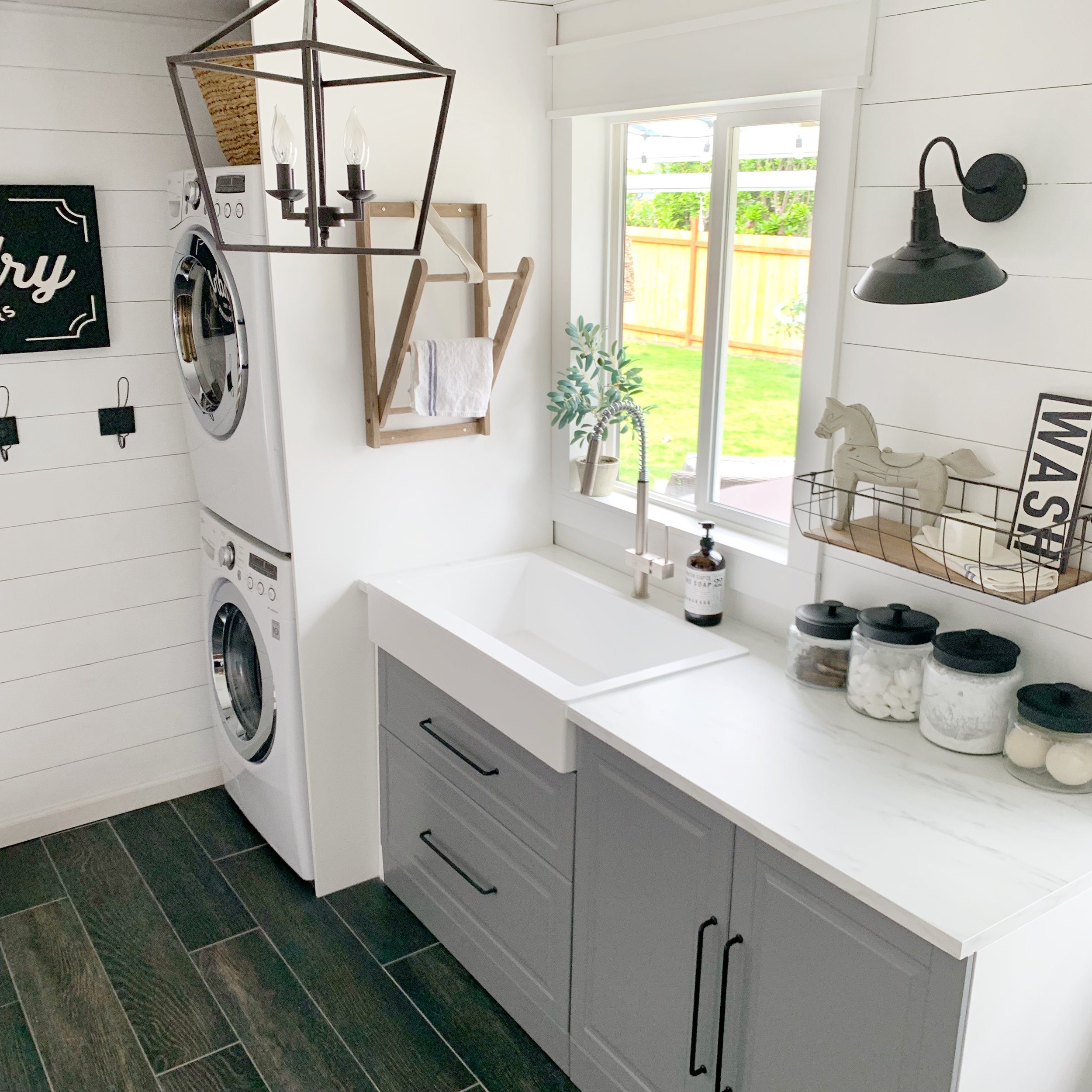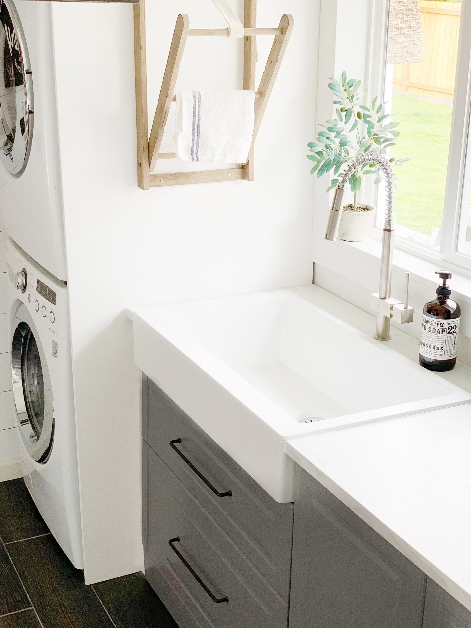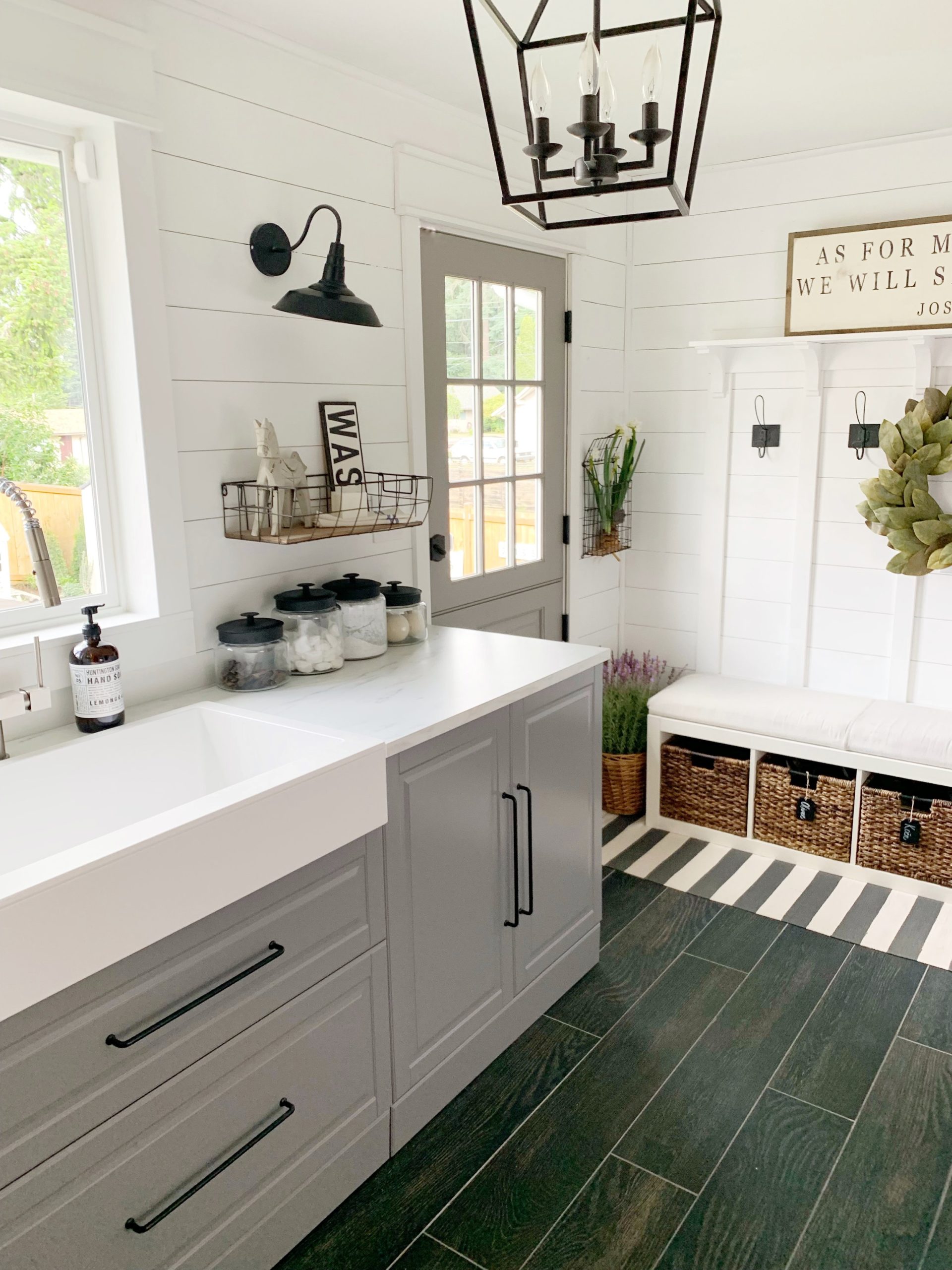 The day everyone has been waiting for : LAUNDRY ROOM REVEAL DAY! What started as an idea when I found this amazing Quartz Sink from Elkay turned into my laundry room dreams! We had a functioning laundry room, but it wasn’t making me happy. When I go into a room in my home I want to just feel at peace and know that I love it. We made a list of the projects we wanted to complete this year and I knew this was a must, so I drew this little sketch and then we started planning. Today I am going to show you the before and afters of this space. Look forward to another blogpost sharing how we did it all and the full budget!