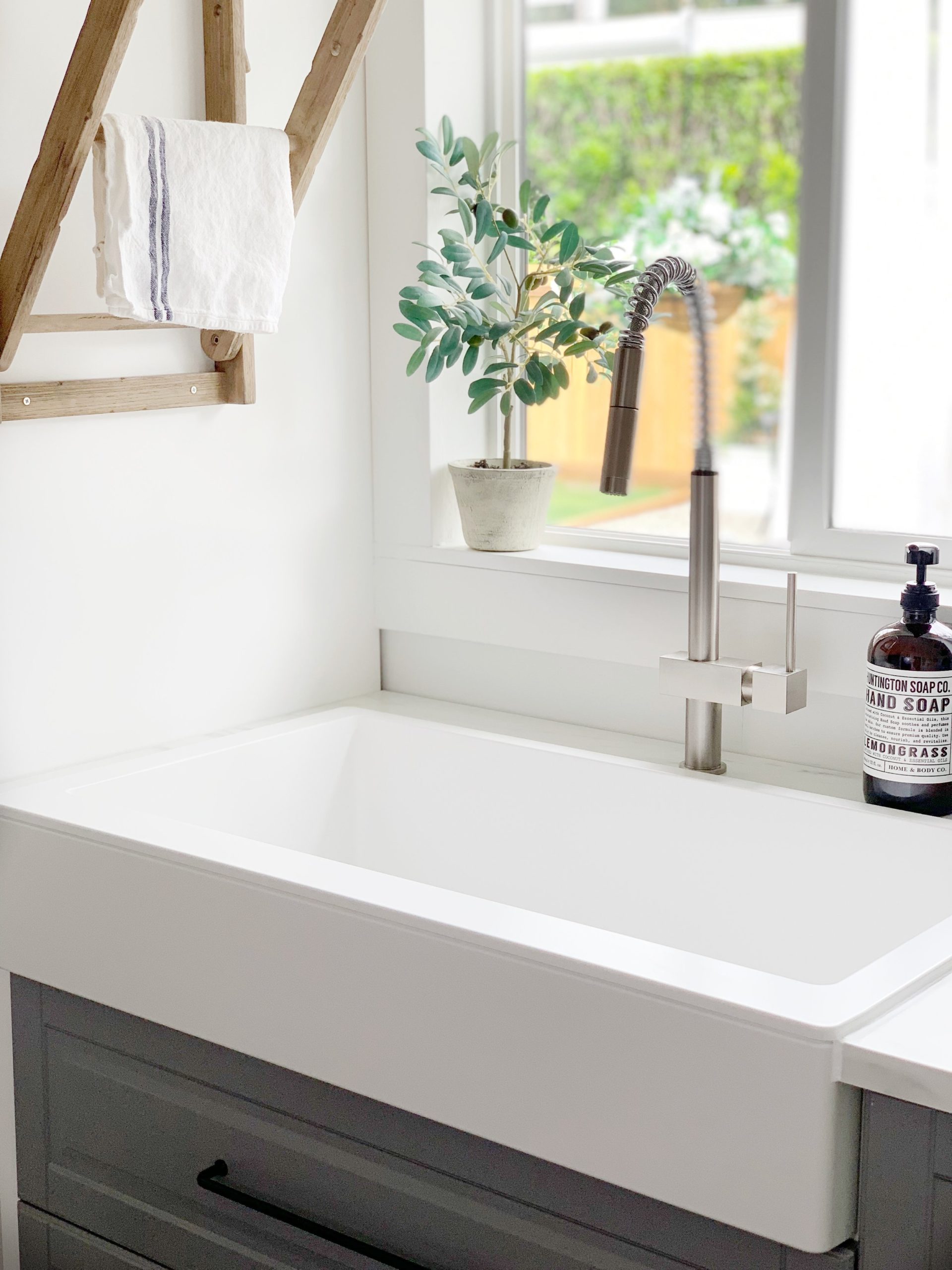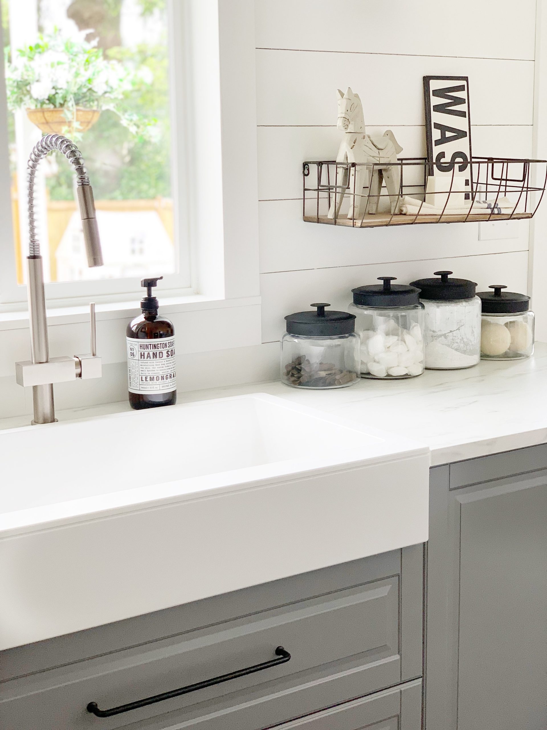 I hope you enjoyed seeing our laundry room reveal. I am so grateful to be able to work with Elkay, I knew once I saw their sinks that I needed one in my home and they are even better in person, plus they have so many to choose from! The faucet I chose is just one of many, and they have great drinking solutions too! Check out Elkay’s ezH2O® Liv its the first built-in filtered water dispenser engineered for the home, and would be perfect for a mudroom or kitchen!
