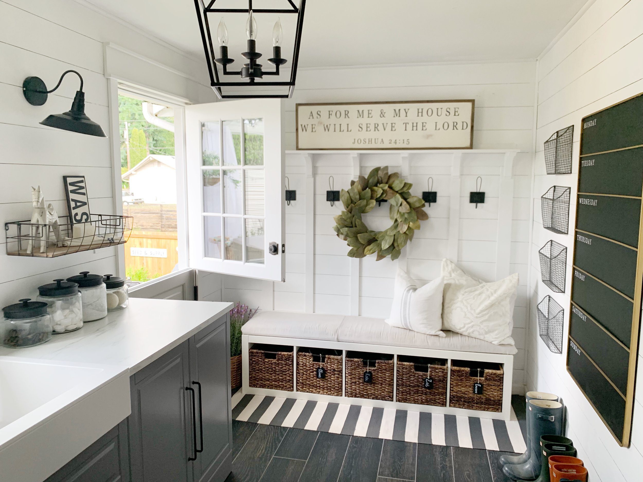 This laundry room space was SO functional, and I honestly was a bit scared to lose that. However, while the look would be great for a larger space, wasn’t working in this room. The built in took up so much room, looking from the outside in you would see the washer/dryer in the window, and that drove me crazy.