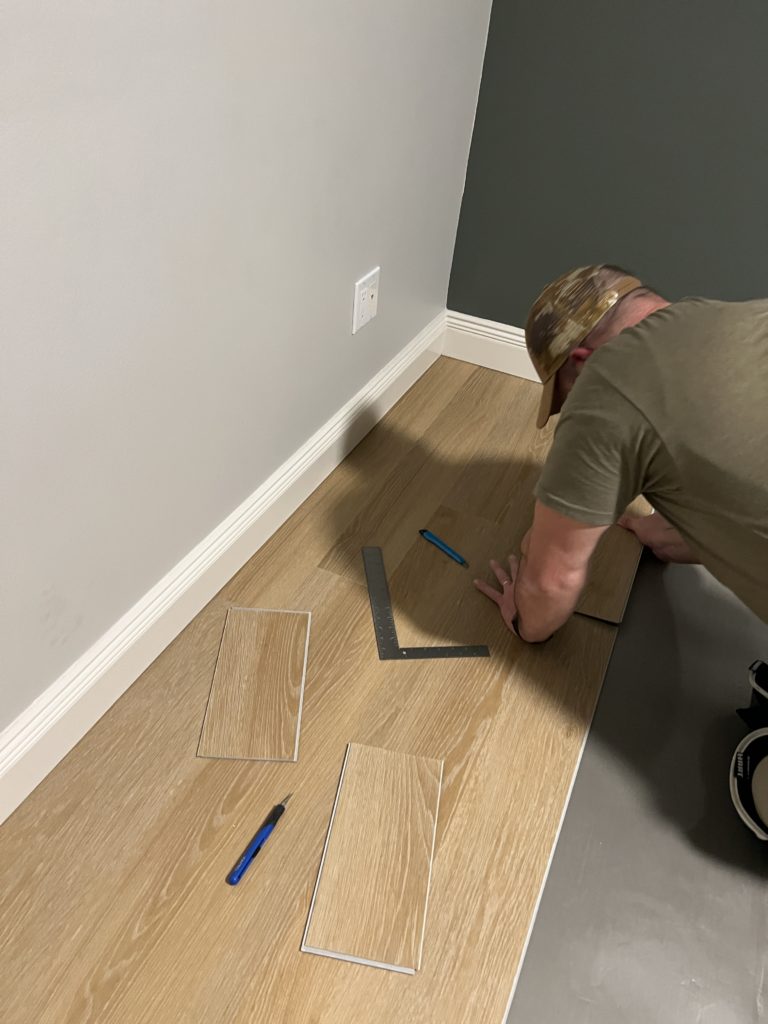 There are many ways to cut the flooring, you can use a box cutter, LVP cutter, or a special one. I have my favorite linked above!