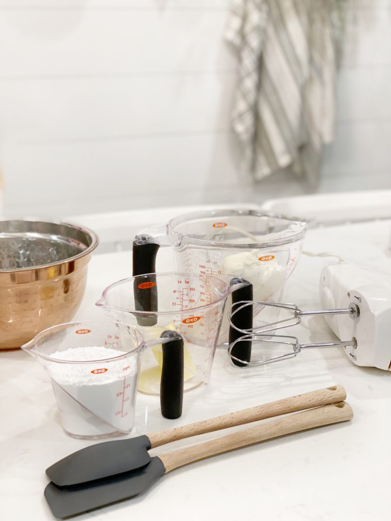 - Grab your 1/2 stick of butter softened, 8 oz cream cheese softened, and 1 cup of powdered sugar. Place it in a bowl and mix with a hand mixer.
