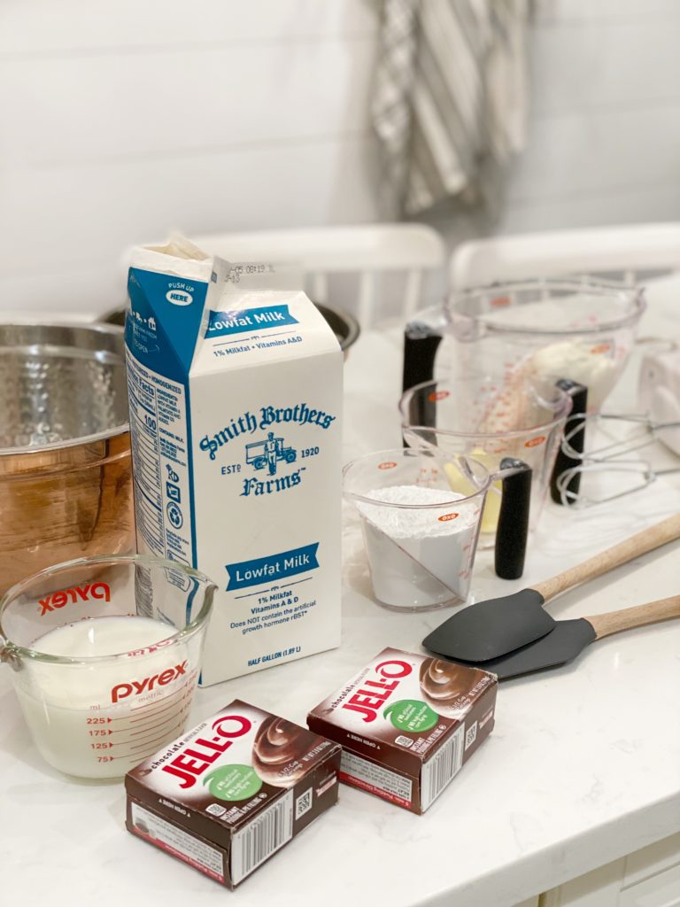 - Time to make the pudding! I love the instant and use two packages. Mix according to directions. I place mine in the fridge once done, thats just how I grew up doing it.