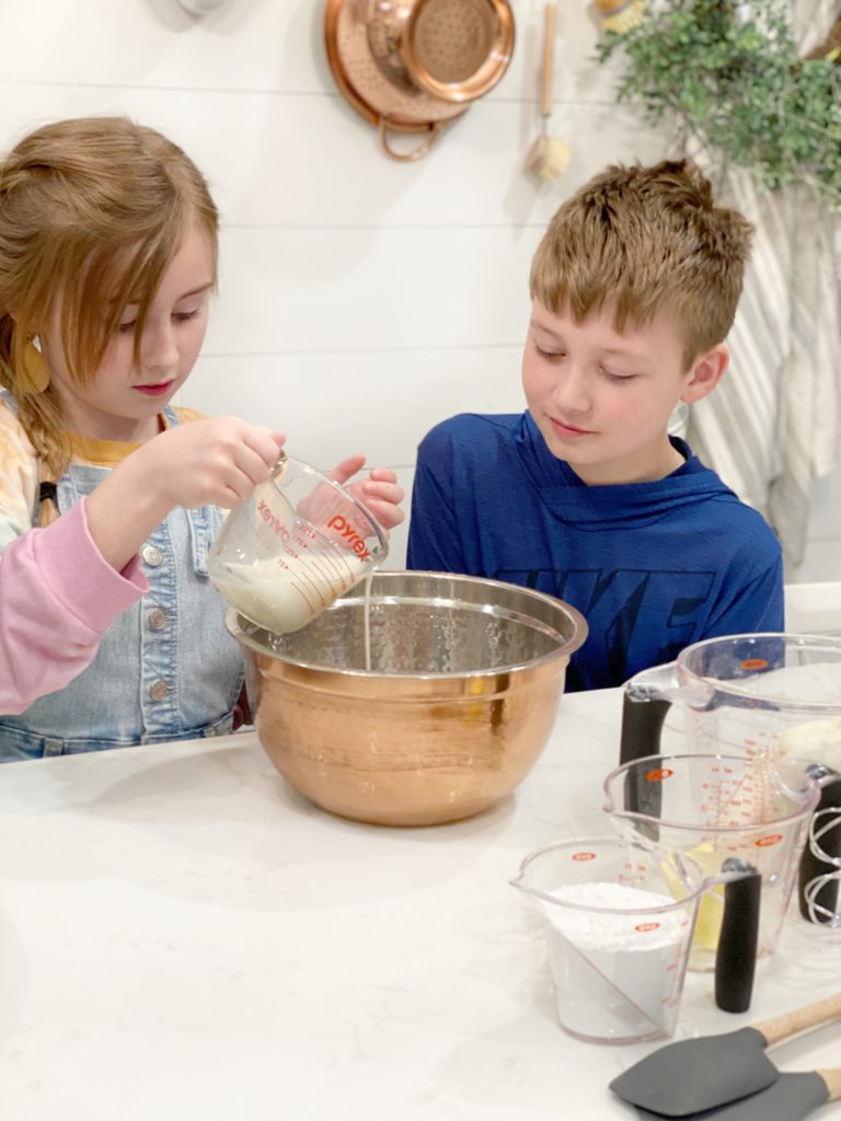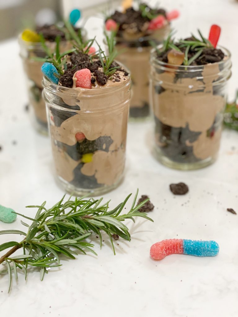For Earth Day we wanted to make something fun, and I thought a fun twist to the dirt cup would be something right from our garden – rosemary! I thought it was a great opportunity to let the kids know that it is edible. After raving about how amazing it smells they had a great idea for next year to add some edible flowers.
