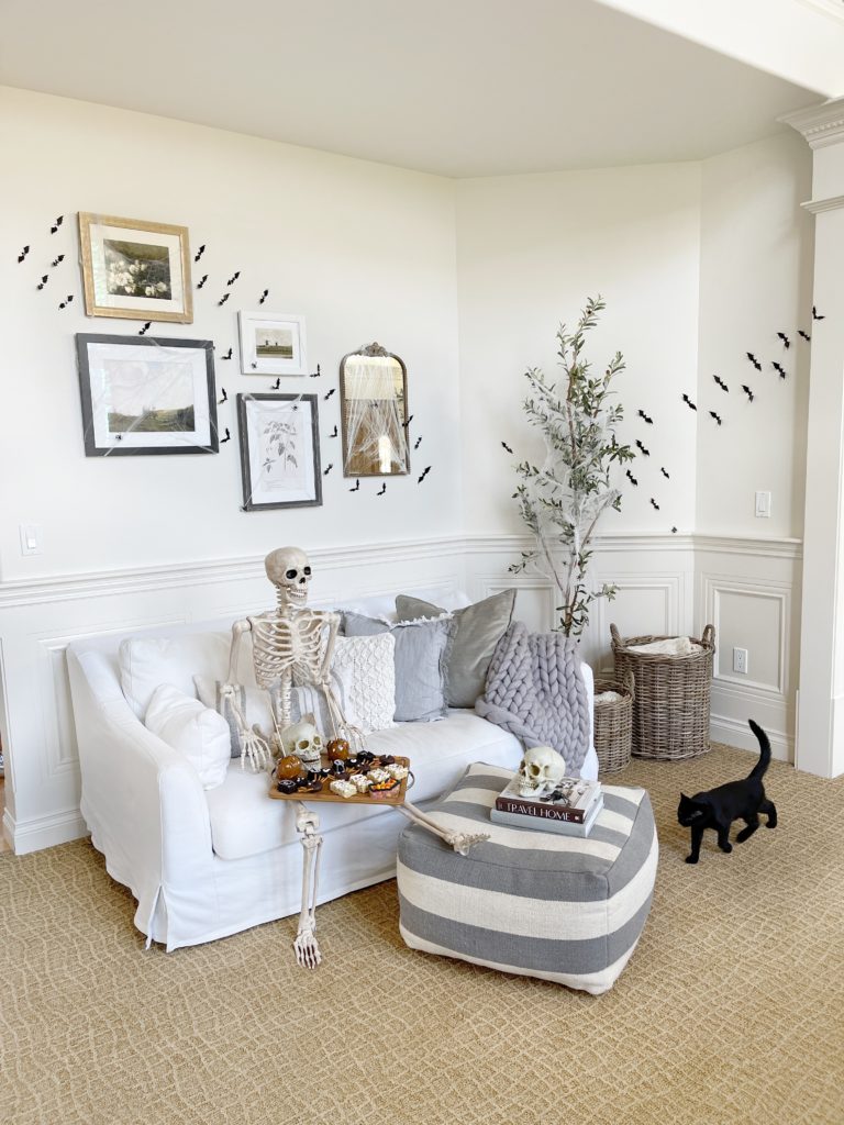 Midnight wanted to join in on the fun, he is the perfect Halloween decor – but really if you wanted to get all the decor in this post including the bats, spider webs, pillows, olive tree from Walmart they are all linked!