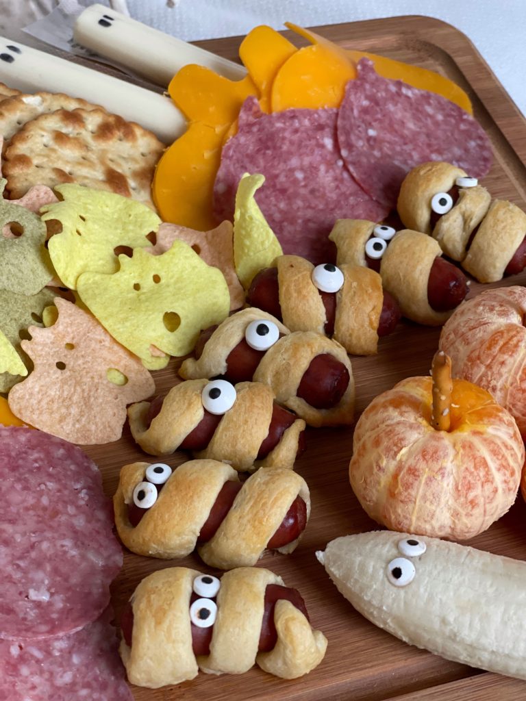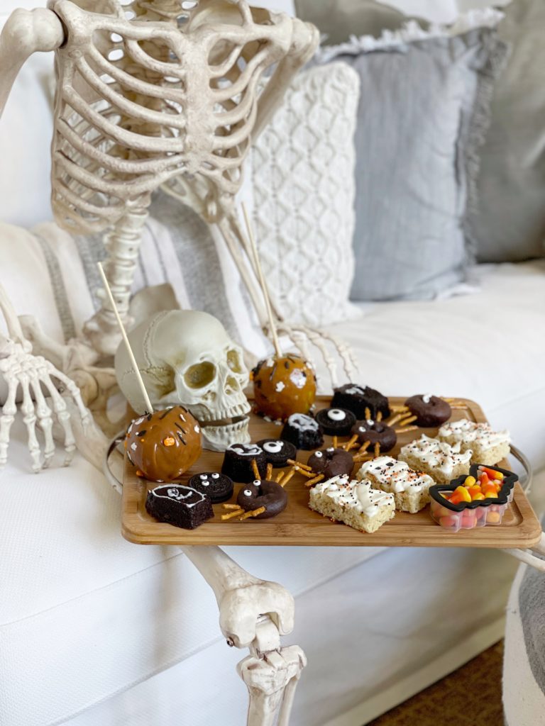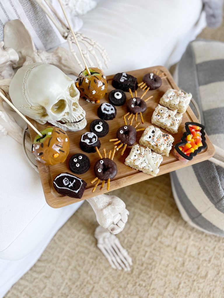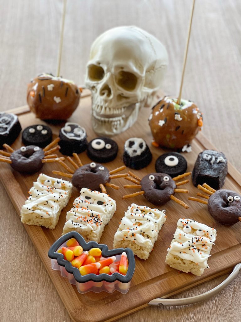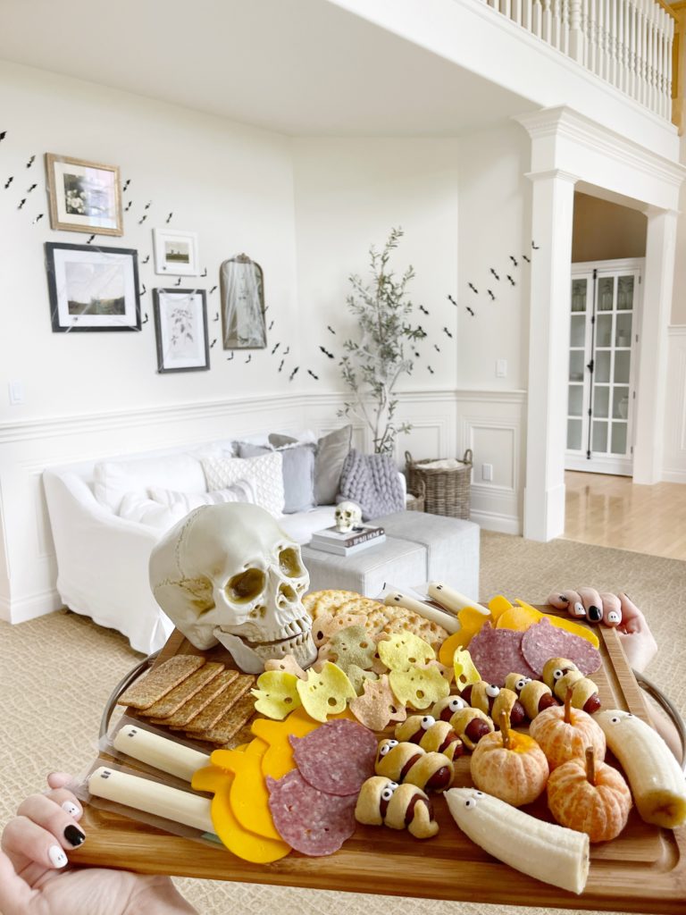 It has been so fun decorating our new house for the holidays, it’s making it feel like home. I thought it would be fun to have some Halloween charcuterie boards for the kids too! I had Zoe my little helper help me with the decor and boards and the dessert one she did on her own!