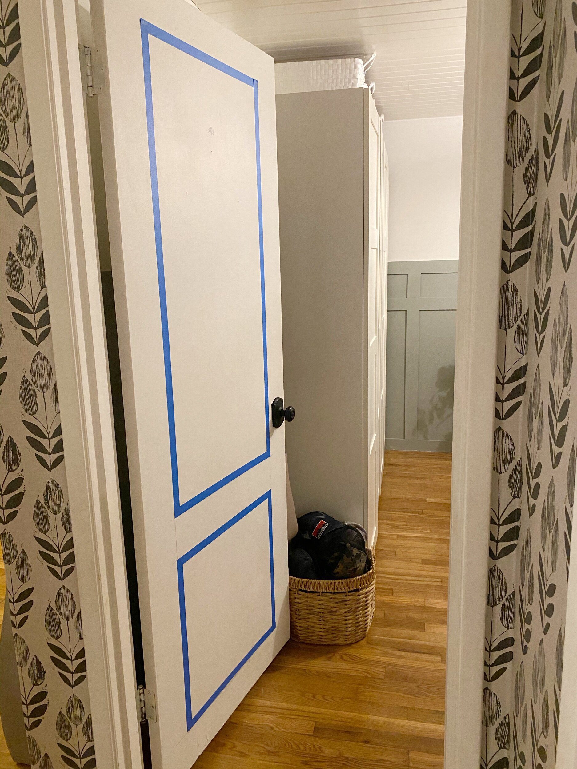 We outlined where we were placing the trim in pencil, and really that would be enough. I taped it in blue painters tape so you could really see our vision.